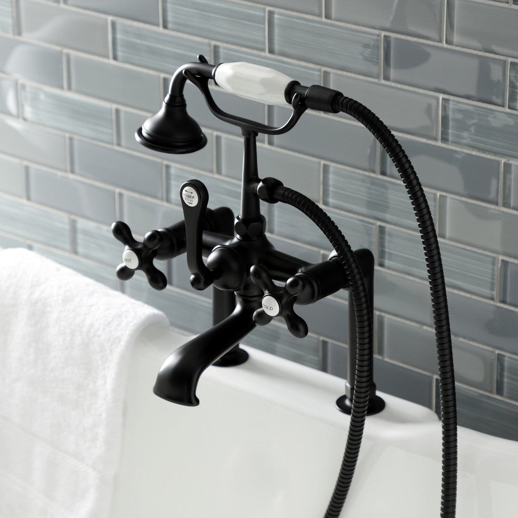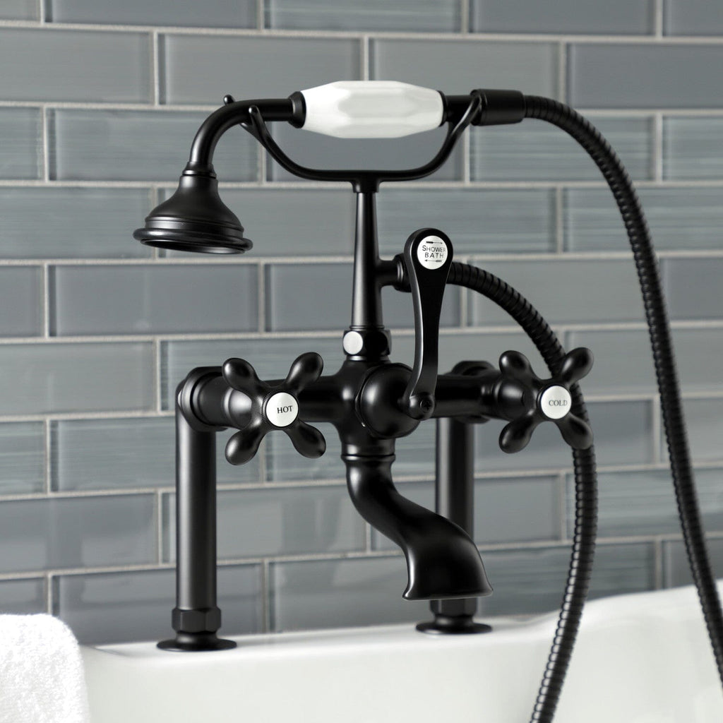 Essex Three-Handle 2-Hole Deck-Mount Clawfoot Tub Faucet with Hand Shower