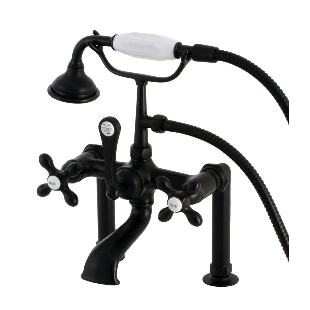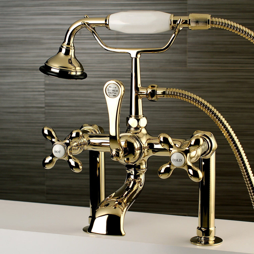 Aqua Vintage Three-Handle 2-Hole Deck-Mount Clawfoot Tub Faucet with Hand Shower