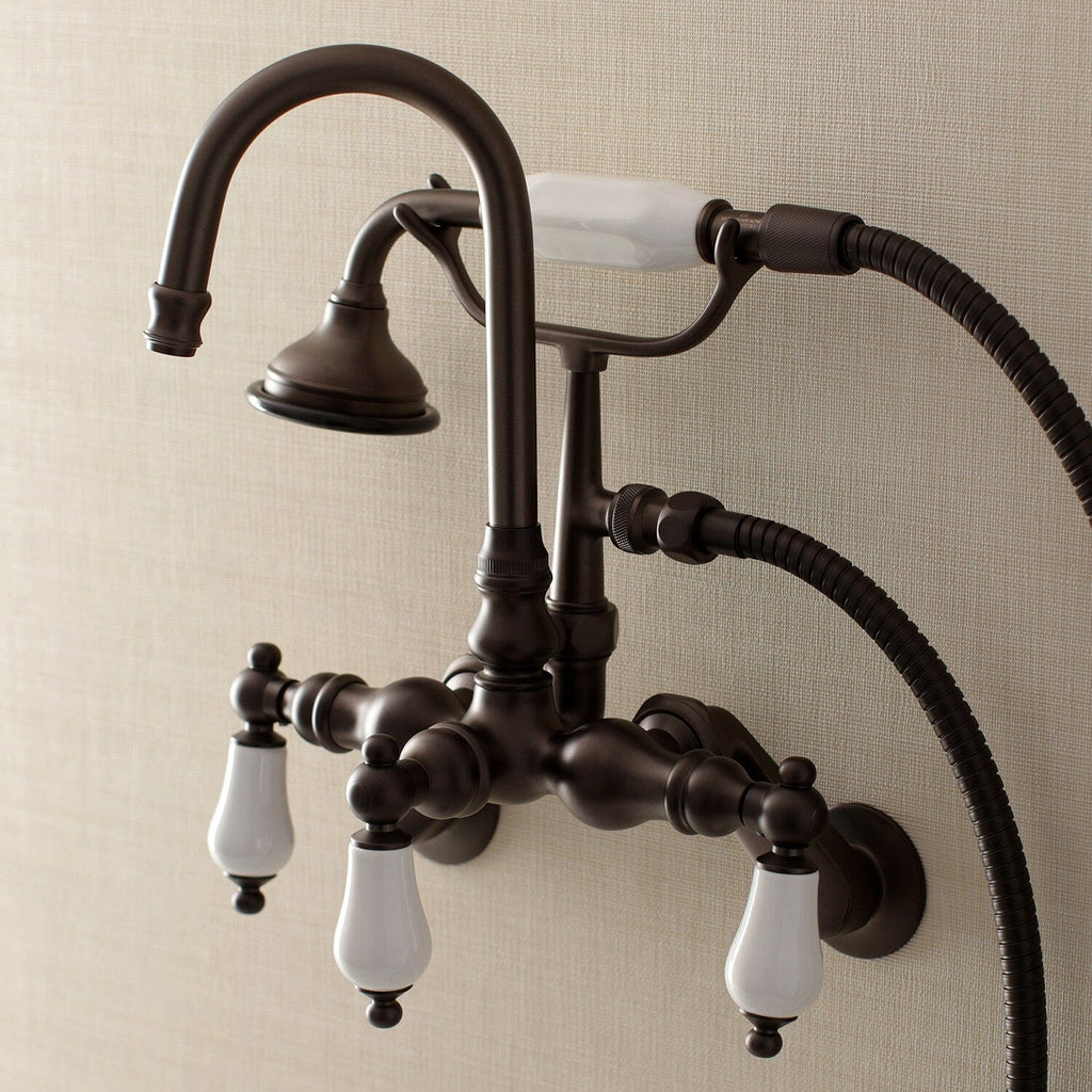 Aqua Vintage Three-Handle 2-Hole Tub Wall Mount Clawfoot Tub Faucet with Hand Shower