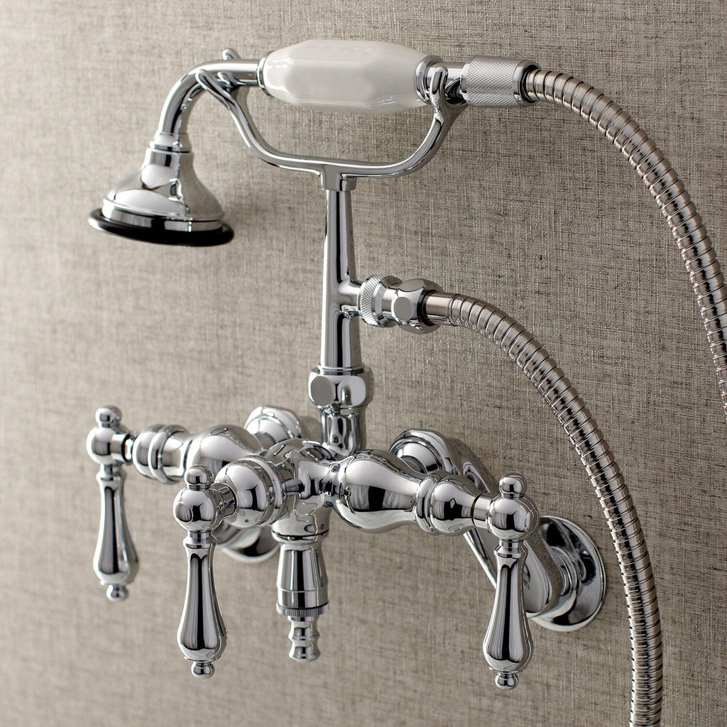 Vintage Three-Handle 2-Hole Tub Wall Mount Clawfoot Tub Faucet with Hand Shower