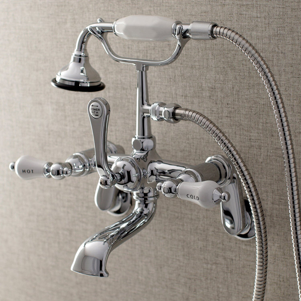 Aqua Vintage Three-Handle 2-Hole Tub Wall Mount Clawfoot Tub Faucet with Hand Shower