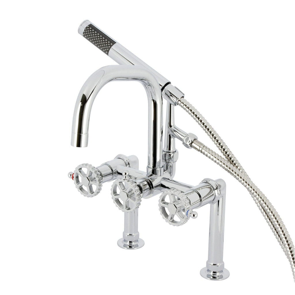 Essex Three-Handle 2-Hole Deck-Mount Clawfoot Tub Faucet with Hand Shower
