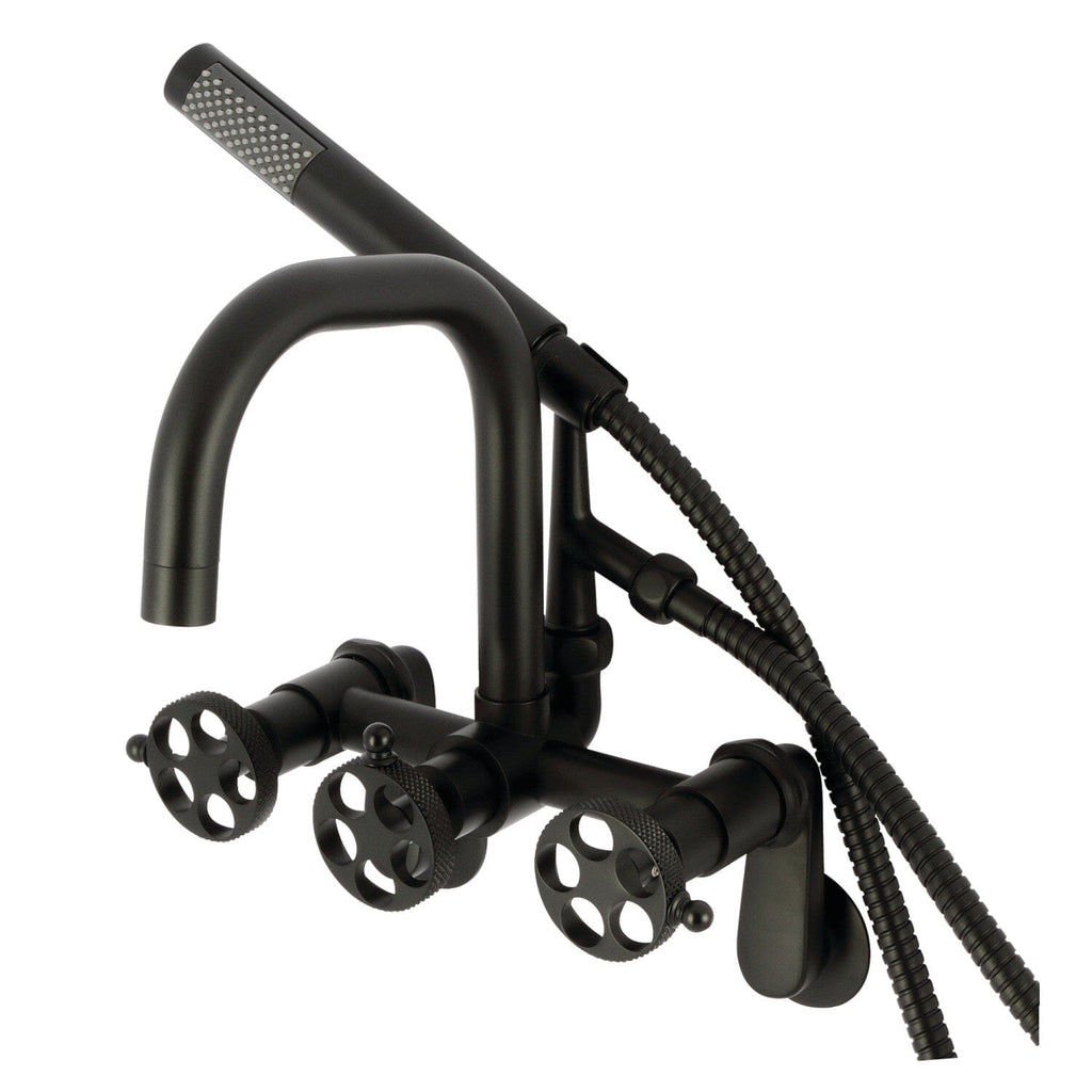 Kingston Two-Handle 2-Hole Wall Mount Clawfoot Tub Faucet with Hand Shower