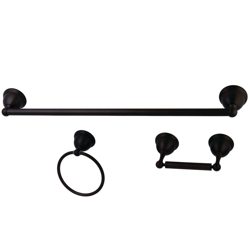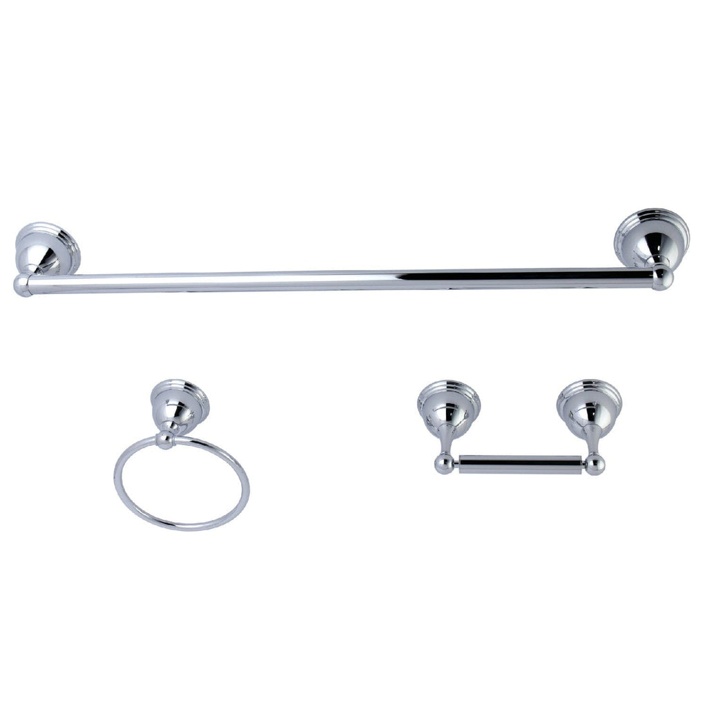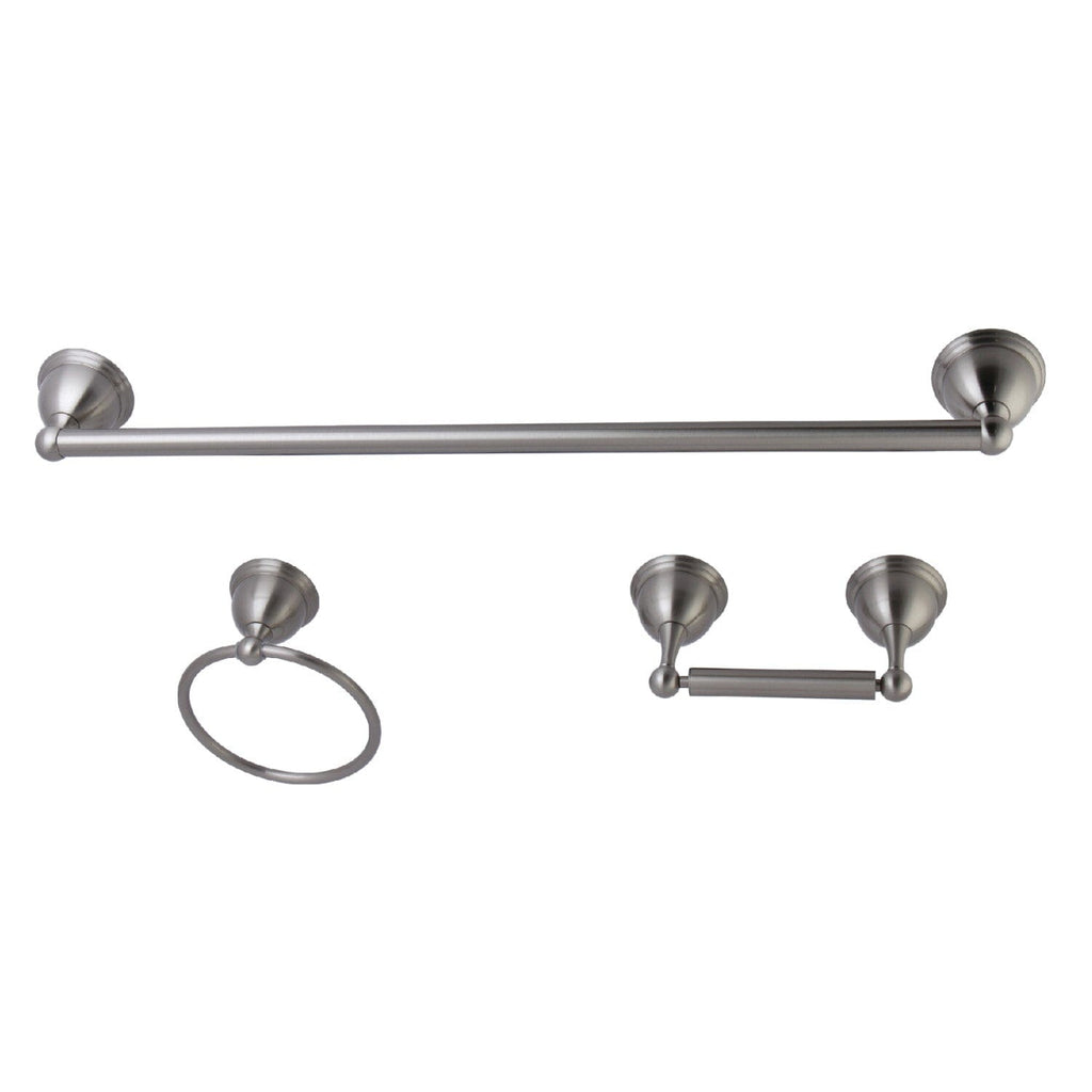- 3-piece set includes: 24" towel bar, towel ring, and toilet paper holder