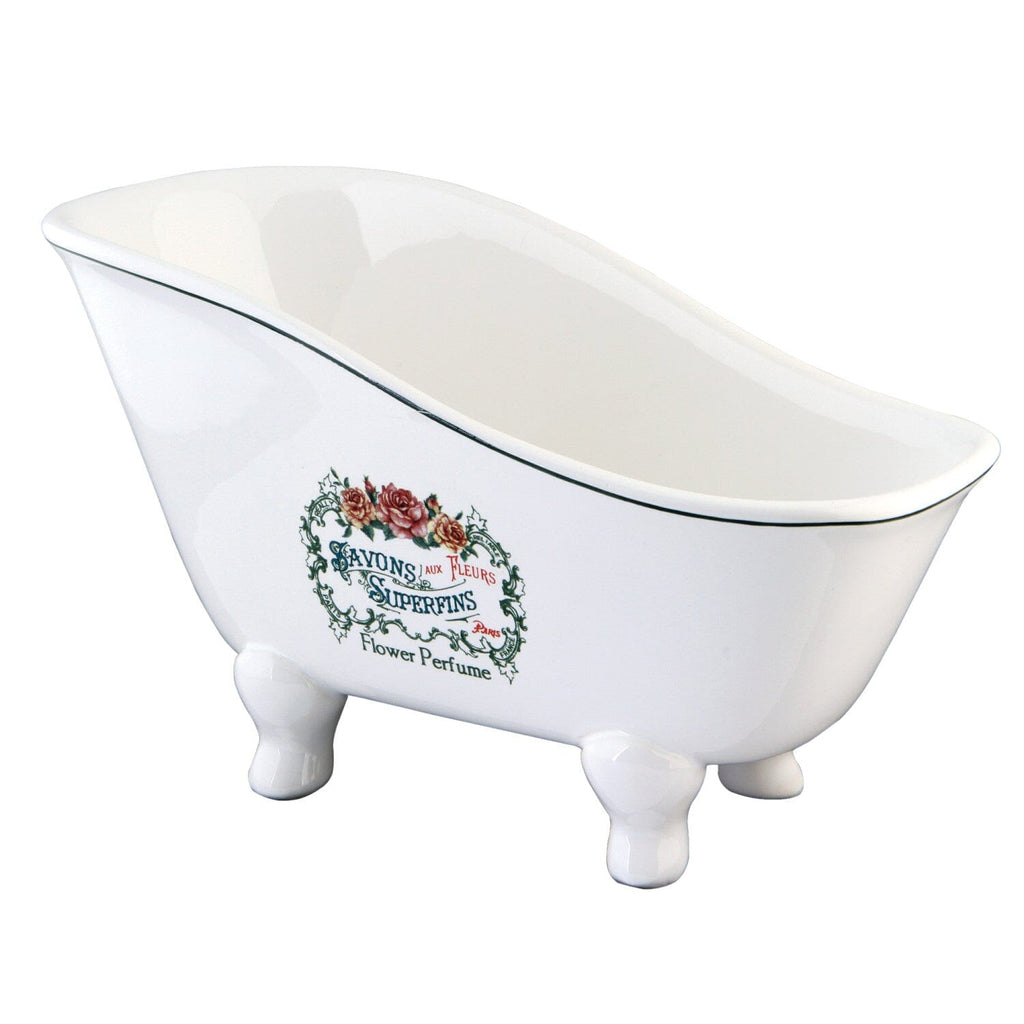 The Savon Superfins miniature ceramic bathtub is perfect for holding small accessories or a bar of soap. With a length of 8", this mini decorative tub is perfect for the bathroom counter.