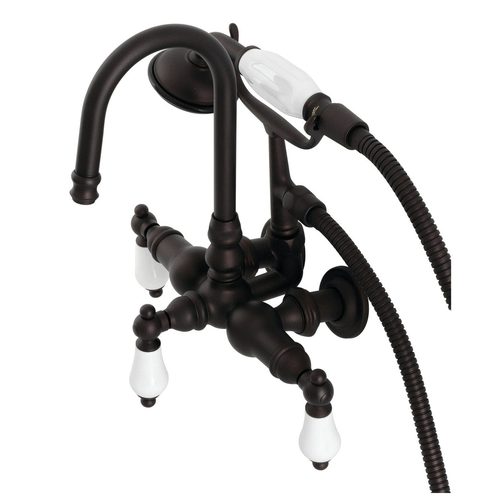 Wall mount clawfoot tub faucets are the perfect fixture to add decorative flair within your bathroom because of their unique architectural elements. With vintage opulence, this will complete your refined bathroom decorum with the help of its premium oil rubbed bronze finish and traditionally styled handheld shower. The solid brass construction also makes for a heavy, quality made product.