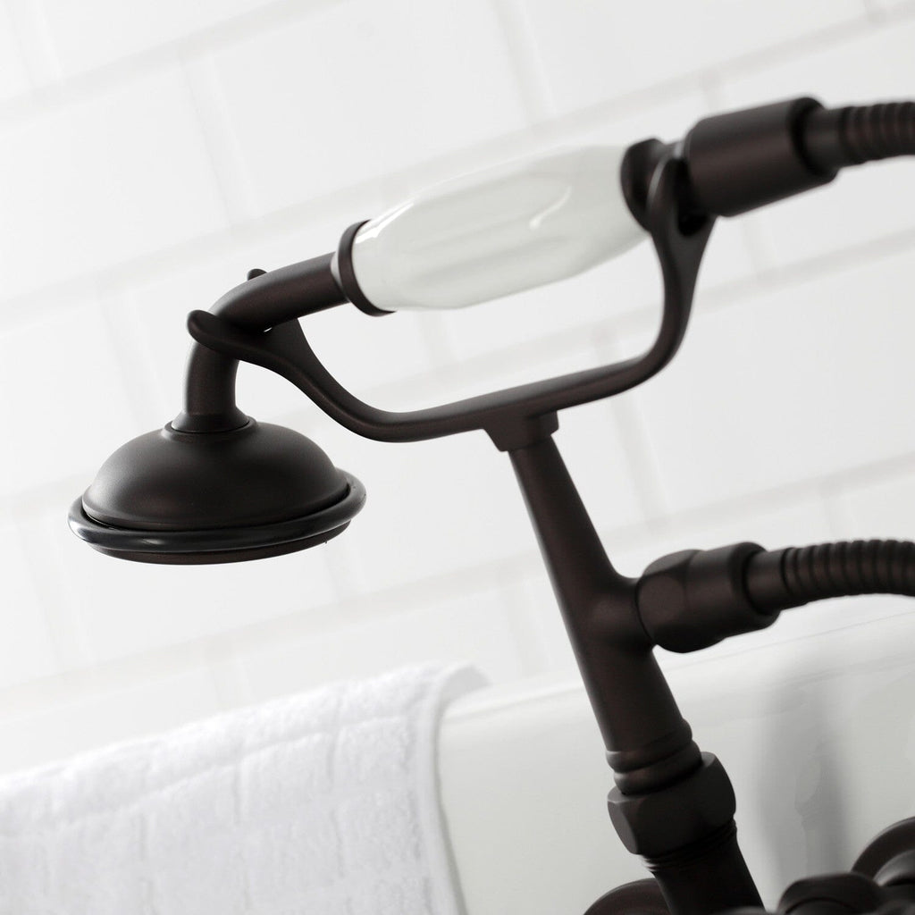 Wall mount clawfoot tub faucets are the perfect fixture to add decorative flair within your bathroom because of their unique architectural elements. With vintage opulence, this will complete your refined bathroom decorum with the help of its premium oil rubbed bronze finish and traditionally styled handheld shower. The solid brass construction also makes for a heavy, quality made product.