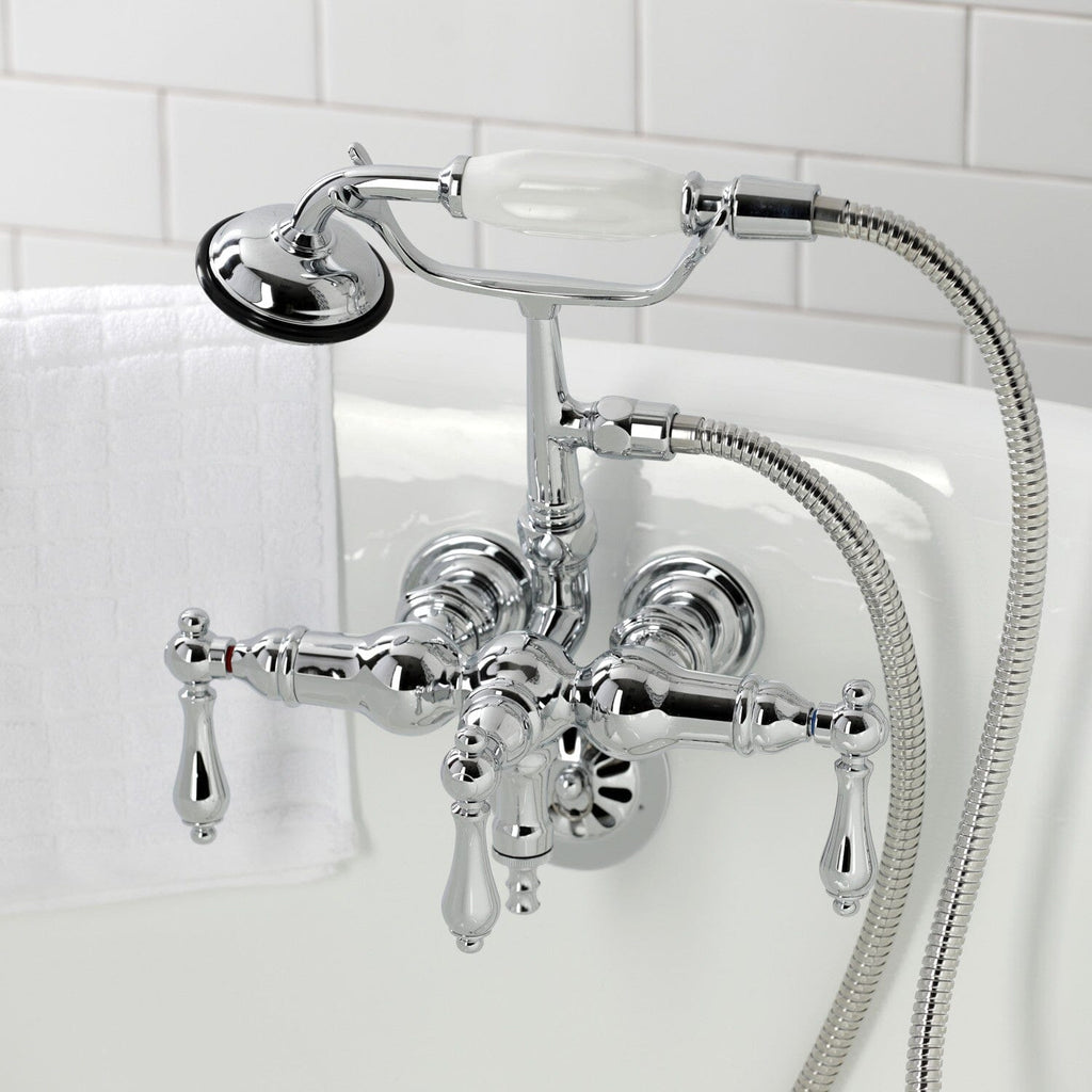 Vintage Three-Handle 2-Hole Tub Wall Mount Clawfoot Tub Faucet with Hand Shower