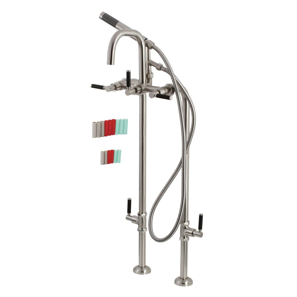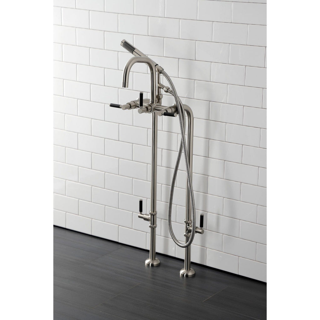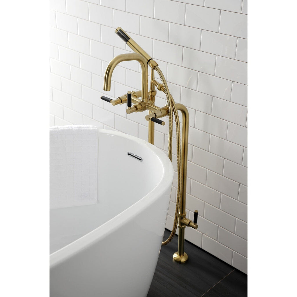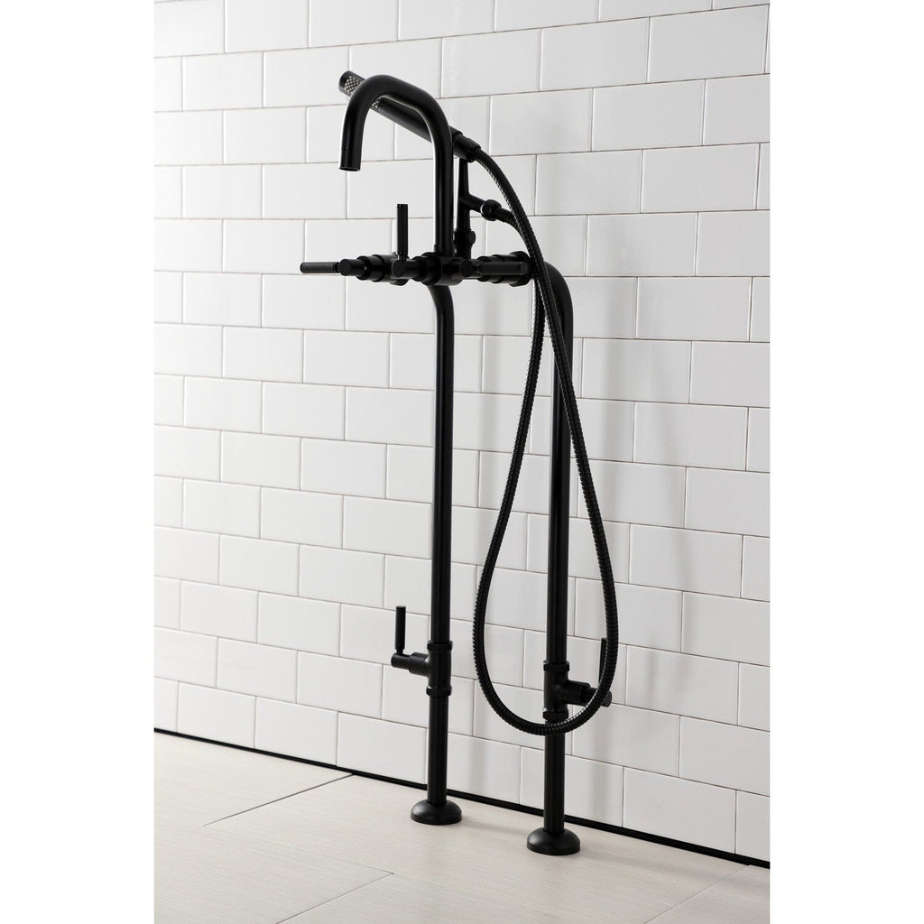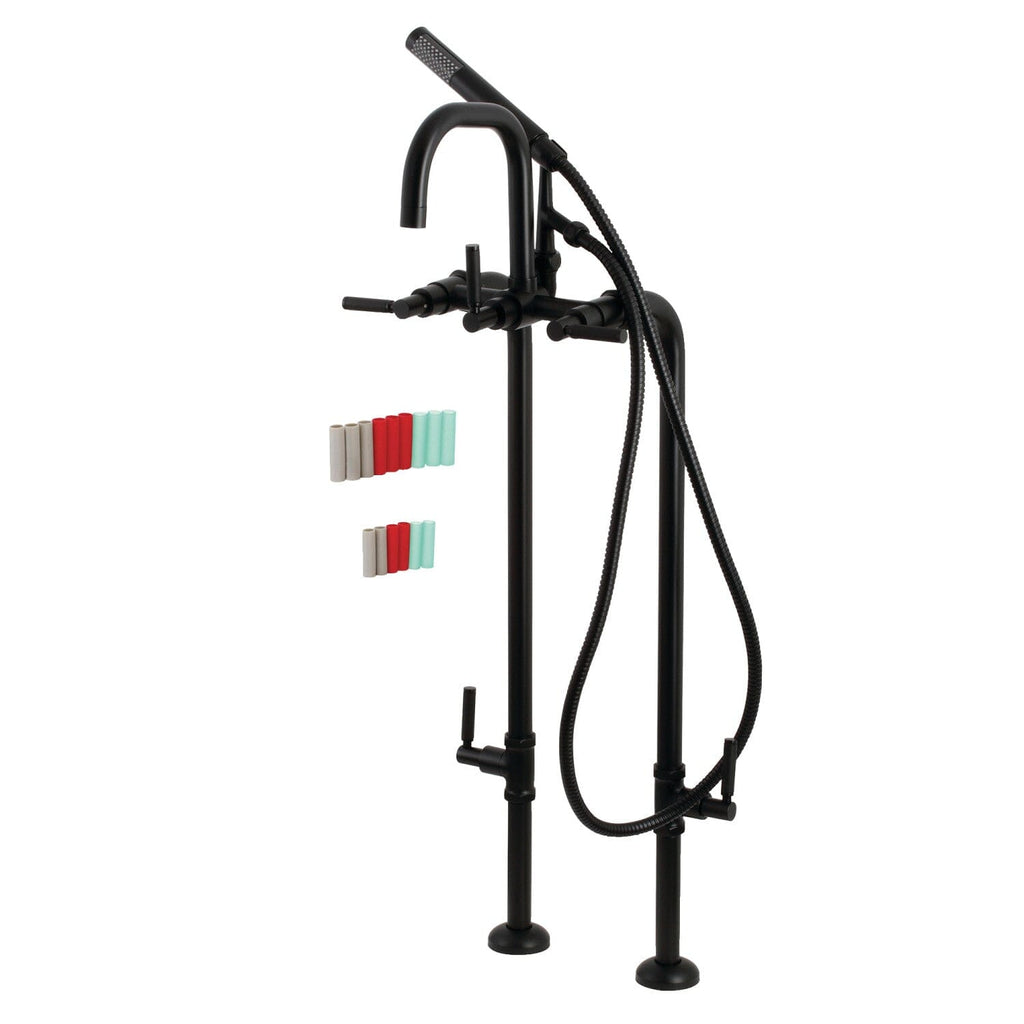 Distinguished for their stately configuration and artsy architecture, freestanding tub faucets are the perfect fixture for any contemporary home to both complement a freestanding tub and act as a beautiful ornamental piece in your bathroom. As the perfect accompaniment to your tub, the Concord freestanding tub faucet will surely complete your refined bathroom decorum with the help of its premium, glistening matte black finish and hand shower. The solid brass construction also makes for a heavy, quality made product. Includes hand shower, water supply lines and shut off valves.