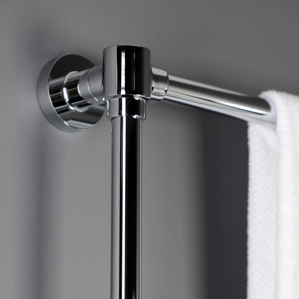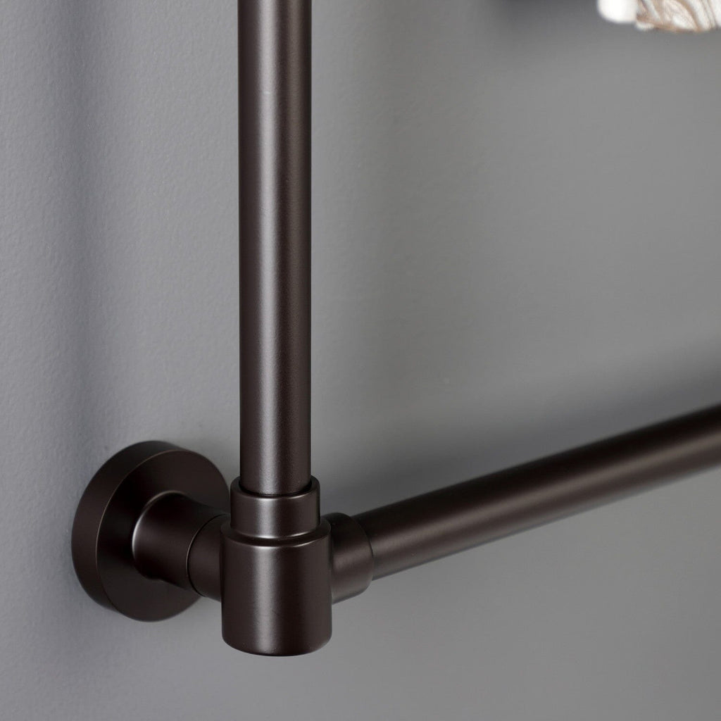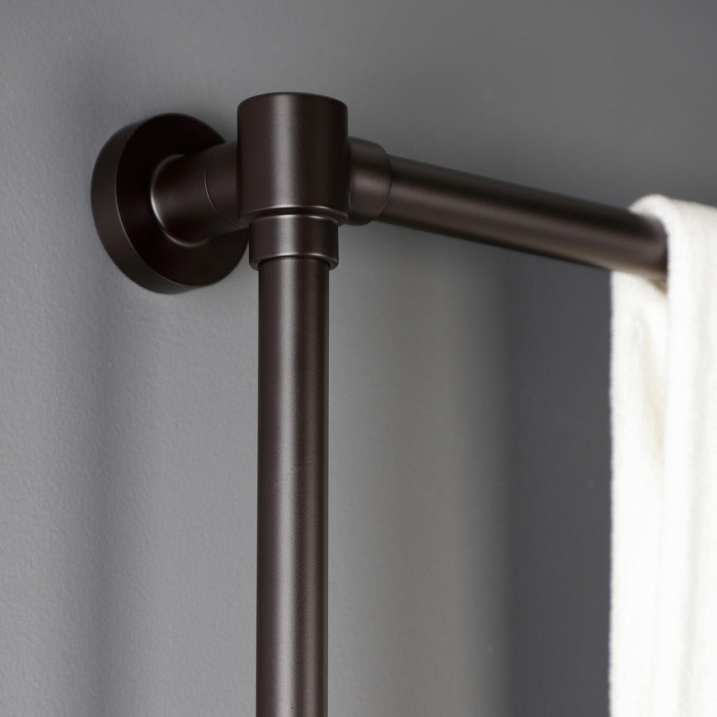 Maximize your towel hanging space with the addition of this contemporary ladder type towel rack. Its 3 horizontal levels will provide you with 90" of towel hanging space while only using 6.66 square feet of wall space. Available in many finishes to match your bathroom decor.