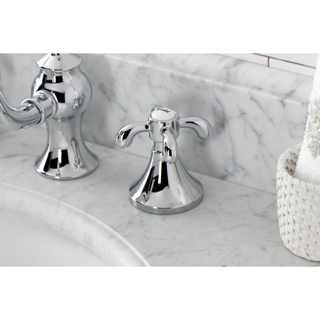 Heirloom Two-Handle 3-Hole Deck Mount Widespread Bathroom Faucet with Brass Pop-Up Ideal for more spacious bathrooms, widespread faucets are more spread apart and feature a 3-hole installation. The Heirloom 8" Widespread Bathroom Faucet, with its its featured sturdy brass construction...
