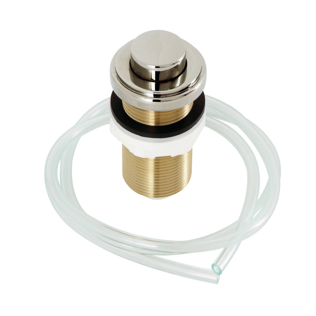 The disposal air switch button from Gourmetier is a convenient way in finishing work around the kitchen sink. The button, which can be mounted to the sink or the countertop, connects to a hose which plunges air activating the disposal. The button is available in a variety of finishes (Chrome, brass, bronze, nickel) to complement the finish of your faucet and/or surrounding decor.