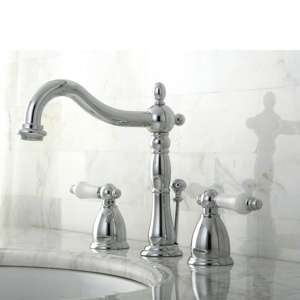Heritage Two-Handle 3-Hole Deck Mount Widespread Bathroom Faucet with Pop-Up Drain