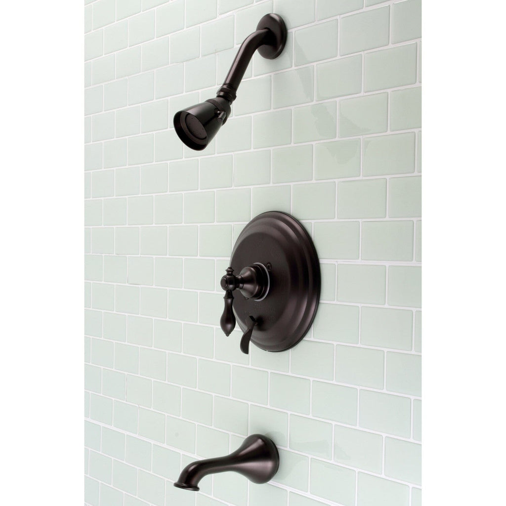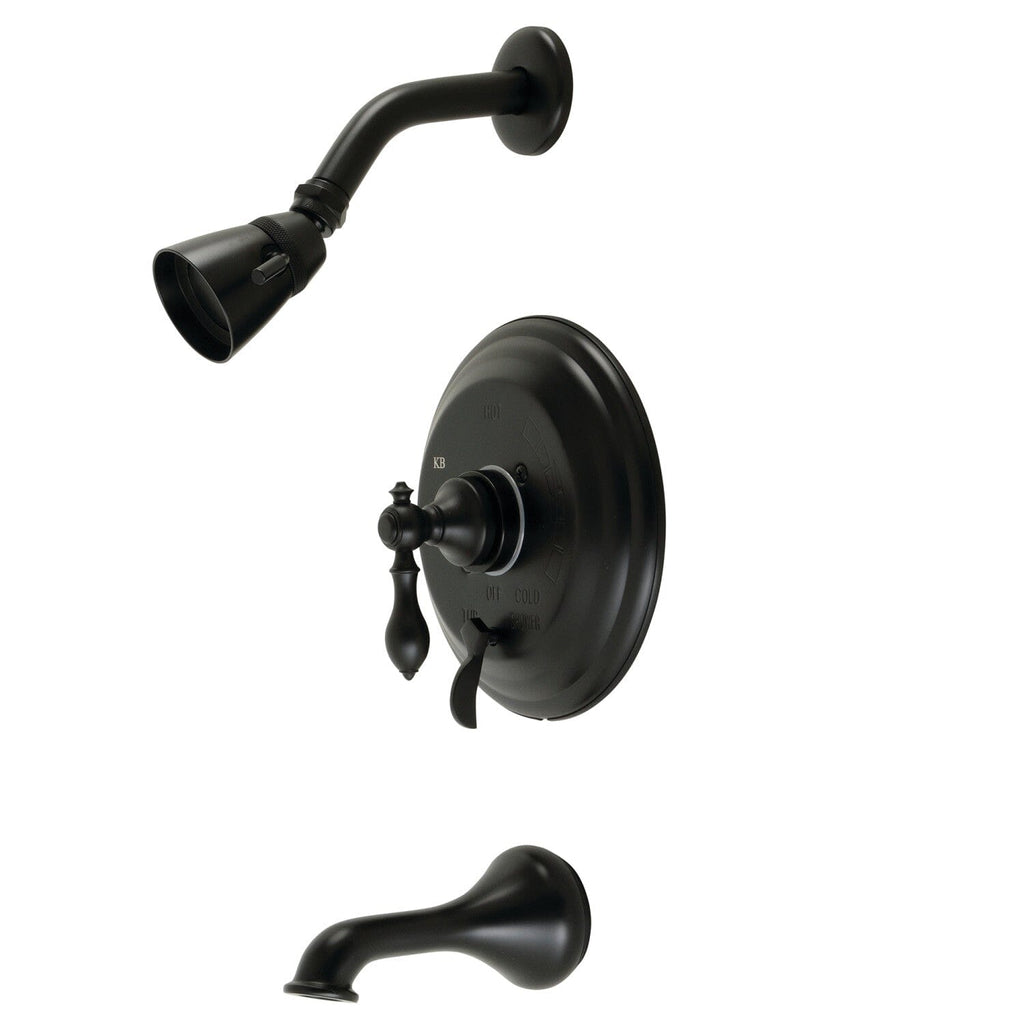 Add refinement and charm to your bathroom with this tub and shower faucet's simple design. Complete with an easy-to-turn lever handle, an optimum bathing experience awaits. Enjoy the sturdy brass construction and premium matte black finish for a fixture that will last for years to come. A pressure balanced valve is included for safety and protection against accidental burns.