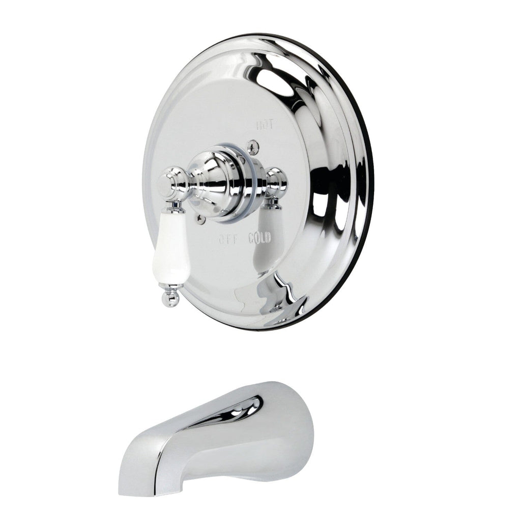 The exquisite design of this tub and shower faucet tastefully flatters the elegant architecture of traditional homes with its fine detailing. Complete with an easy-to-turn lever handle, an optimum bathing experience awaits. Enjoy the sturdy brass construction and premium polished chrome finish for a fixture that will last for years to come. A pressure balanced valve is included for safety and protection against accidental burns.
