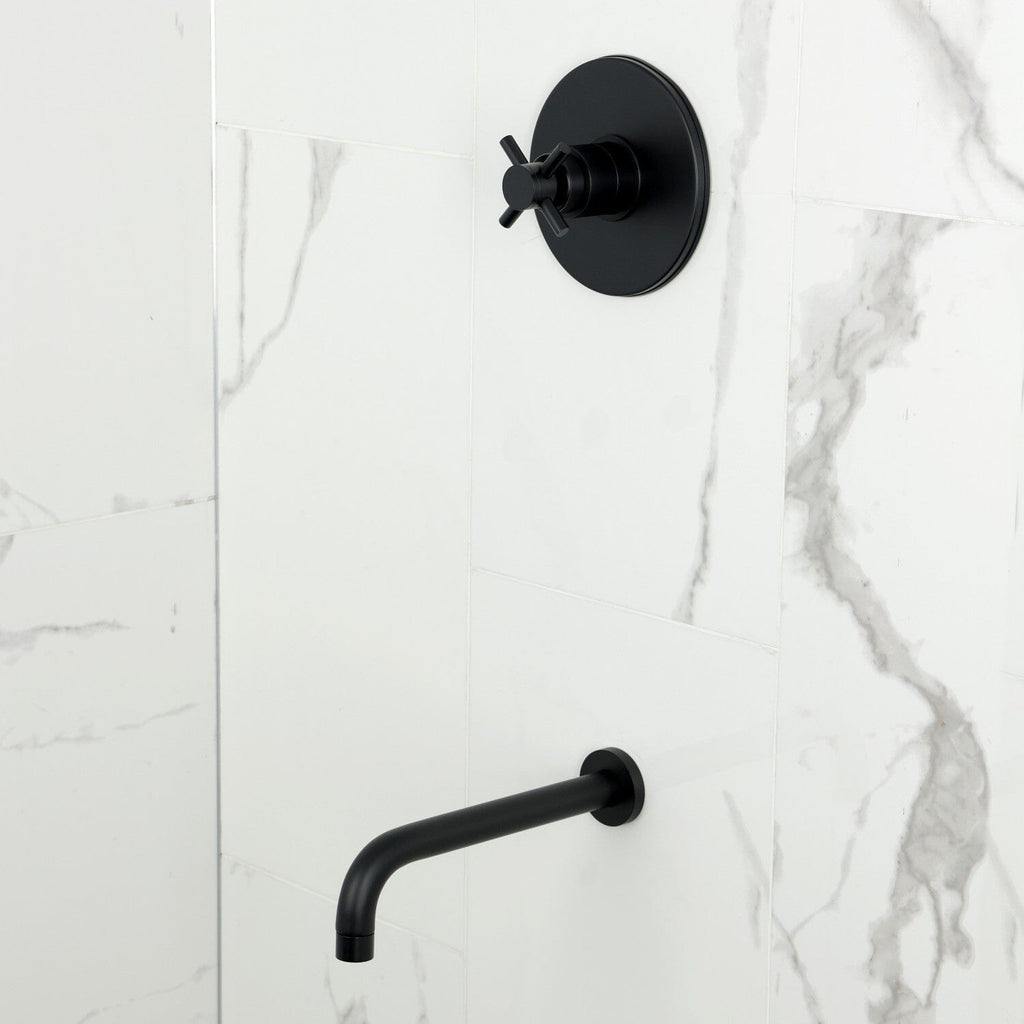 Raise your bathing experience to unparalleled levels of luxury with our impeccably designed contemporary tub set. This striking ensemble features a sleek, tubular 11-inch spout, offering an extended projection into your tub for a truly immersive soak. The modern cross handle adds a refined touch, seamlessly blending form and function to create a chic, contemporary aesthetic. For those who seek to enhance both style and versatility, consider adding a 3-way diverter and hand shower combo from Designer Hardware, designed to elevate your bathing ritual even further. This tub set is the ultimate fusion of sophistication and practicality, making it the perfect addition to any modern bathroom decor.