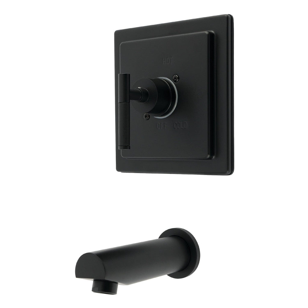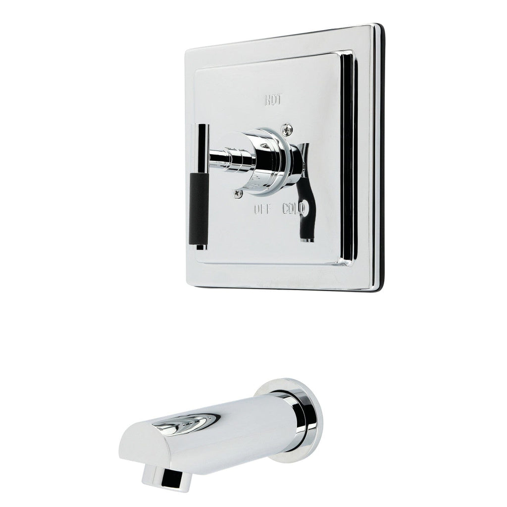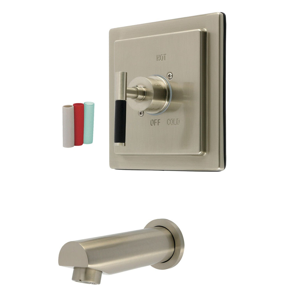 Transform the appearance and functionality of your bathroom with the Tub Set from the Kaiser Collection® by Designer Hardware. The sharp angles of the faceplate and the sleek tubular neoprene handle, along with the 6-1/2” tub spout, create a contemporary aesthetic. This versatile unit can serve as a standalone tub filler or as a foundation for adding a handshower or showerhead. It features a pressure balance valve and anti-scald limiting device for enhanced safety, and it comes in a variety of finishes to complement your existing bathroom fixtures as well as 4 different colored handle inserts.
