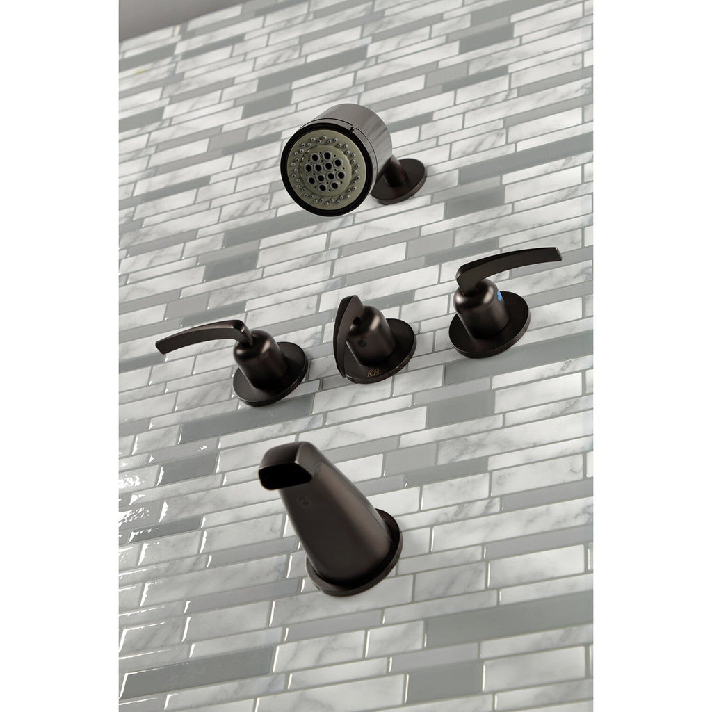 The innovative, sleek design of this tub and shower faucet will enhance contemporary decor Complete with easy-to-turn lever handles, an optimum bathing experience awaits. Enjoy the sturdy brass construction and premium matte black finish for a fixture that will last for years to come. Internal valve hardware is included for your use.