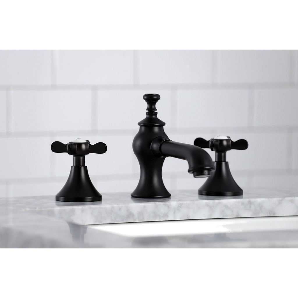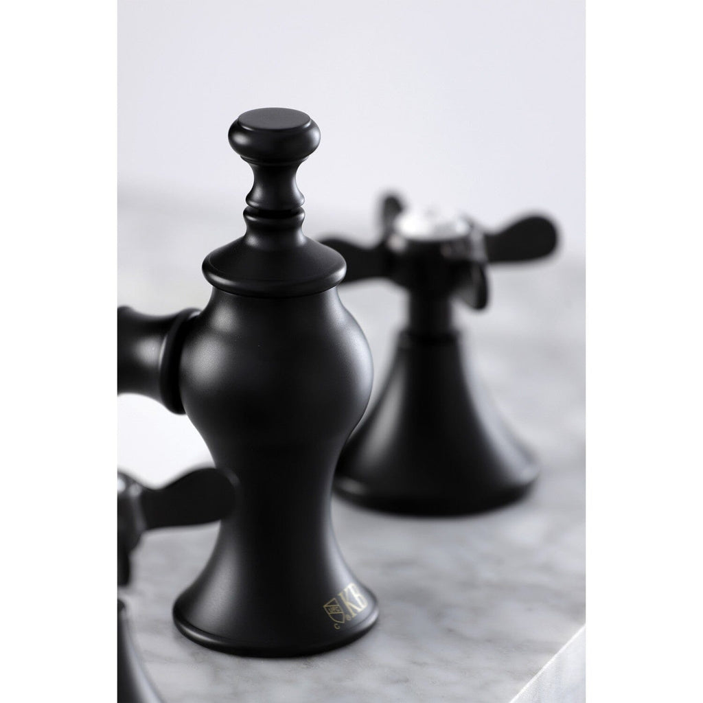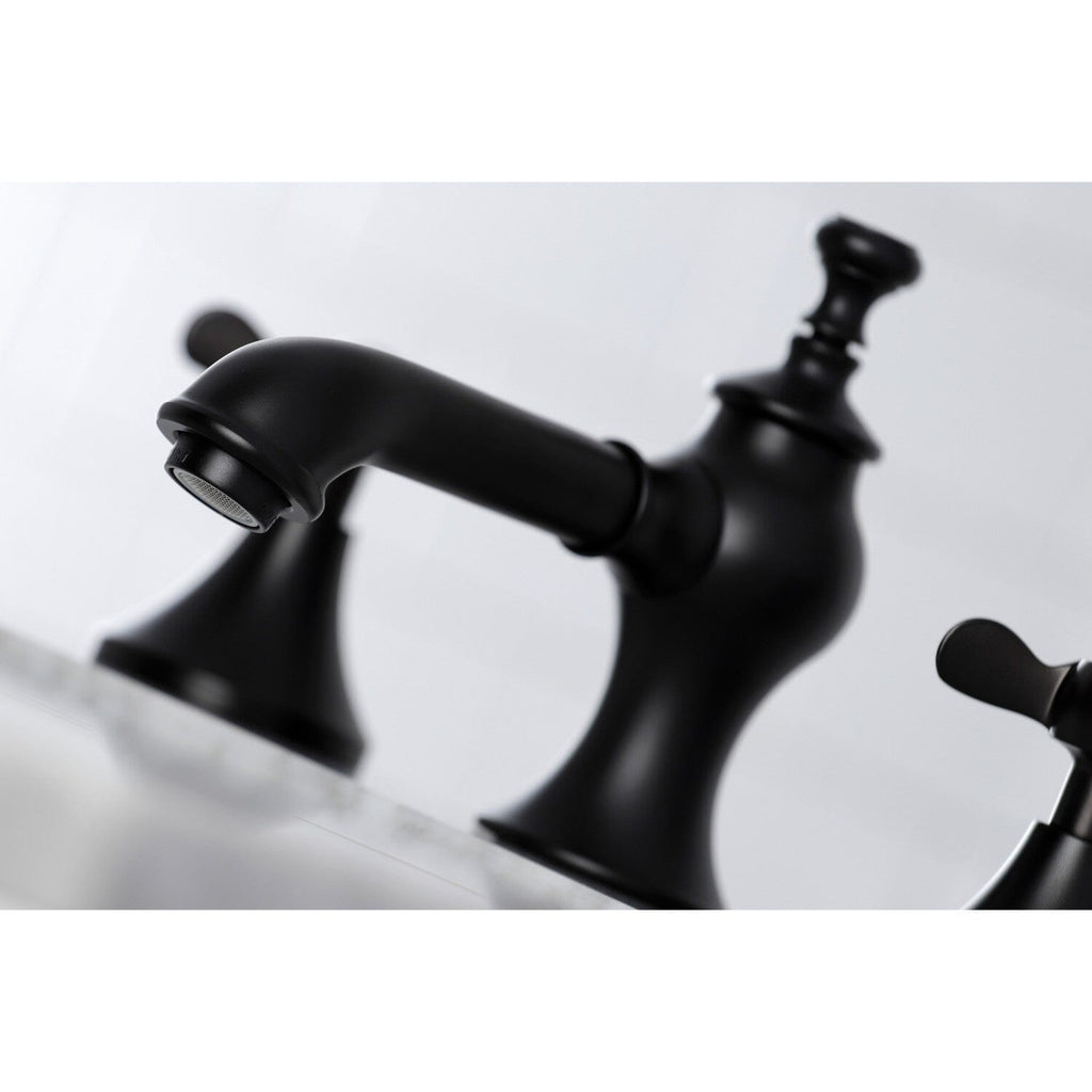 The spirit of the Victorian Era finds itself elegantly and eagerly spun into the unique design of this faucet. Ideal for more spacious bathrooms, widespread faucets are more spread apart and feature a 3-hole installation. The Essex 8" Widespread Bathroom Faucet, with its featured sturdy brass construction and premium matte black finish, are guaranteed to glamorize your home's traditional ensemble for years to come. This faucet adds a sheen of classical grace to your traditional style. A matching finish drain is also included.