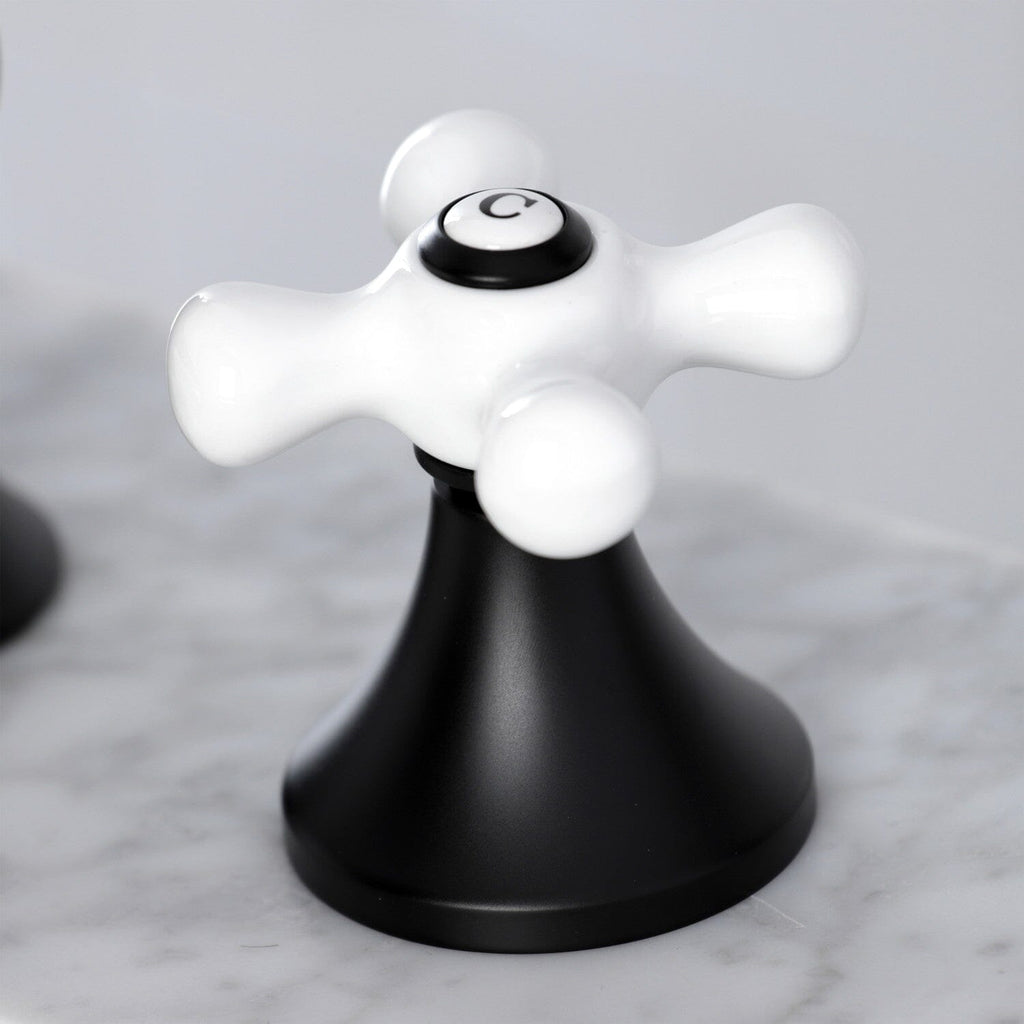 Return to the antique designs of the early 20th Century with this faucet, offering detailings of refined splendor and ornate design to your home. Ideal for more spacious bathrooms, widespread faucets are more spread apart and feature a 3-hole installation. The Vintage 8" Widespread Bathroom Faucet, with its featured sturdy brass construction and premium matte black finish, are guaranteed to glamorize your home's traditional ensemble for years to come. Let this faucet bring about an air of traditional allure to your interior home design. A matching finish drain is also included.