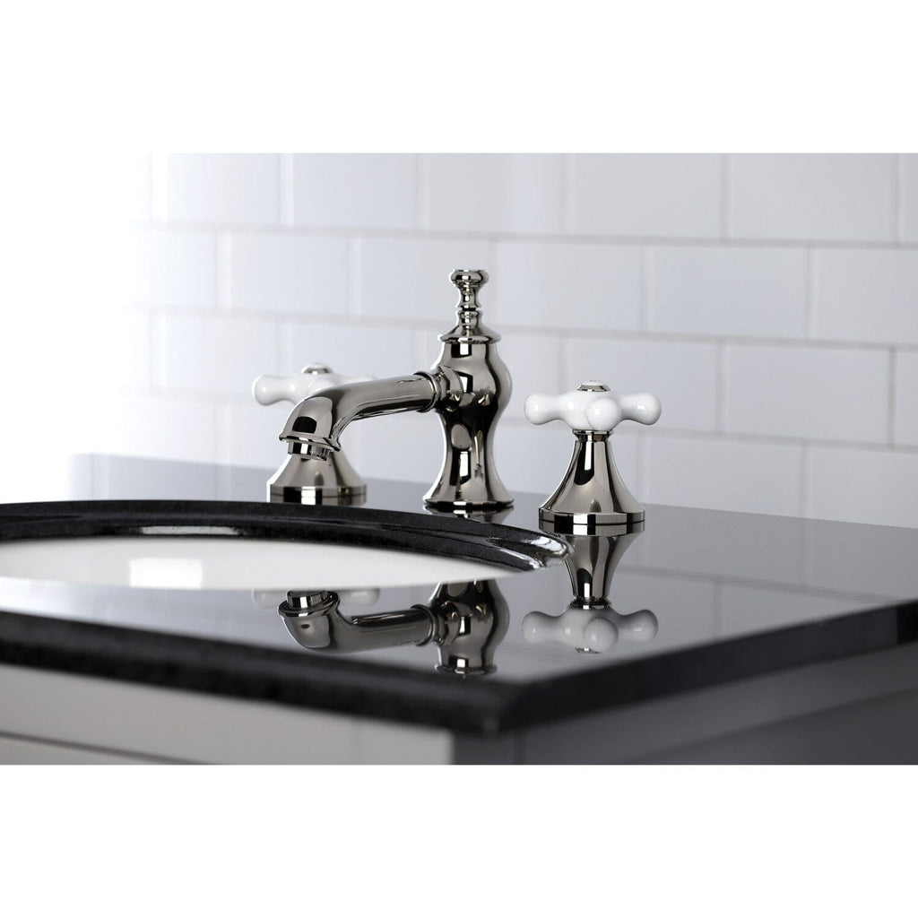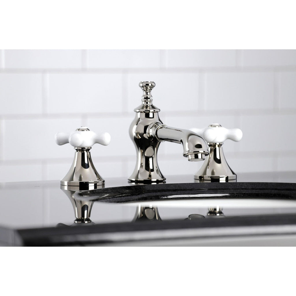 Heirloom Two-Handle 3-Hole Deck Mount Widespread Bathroom Faucet with Brass Pop-Up Ideal for more spacious bathrooms, widespread faucets are more spread apart and feature a 3-hole installation. The Heirloom 8" Widespread Bathroom Faucet, with its its featured sturdy brass construction...