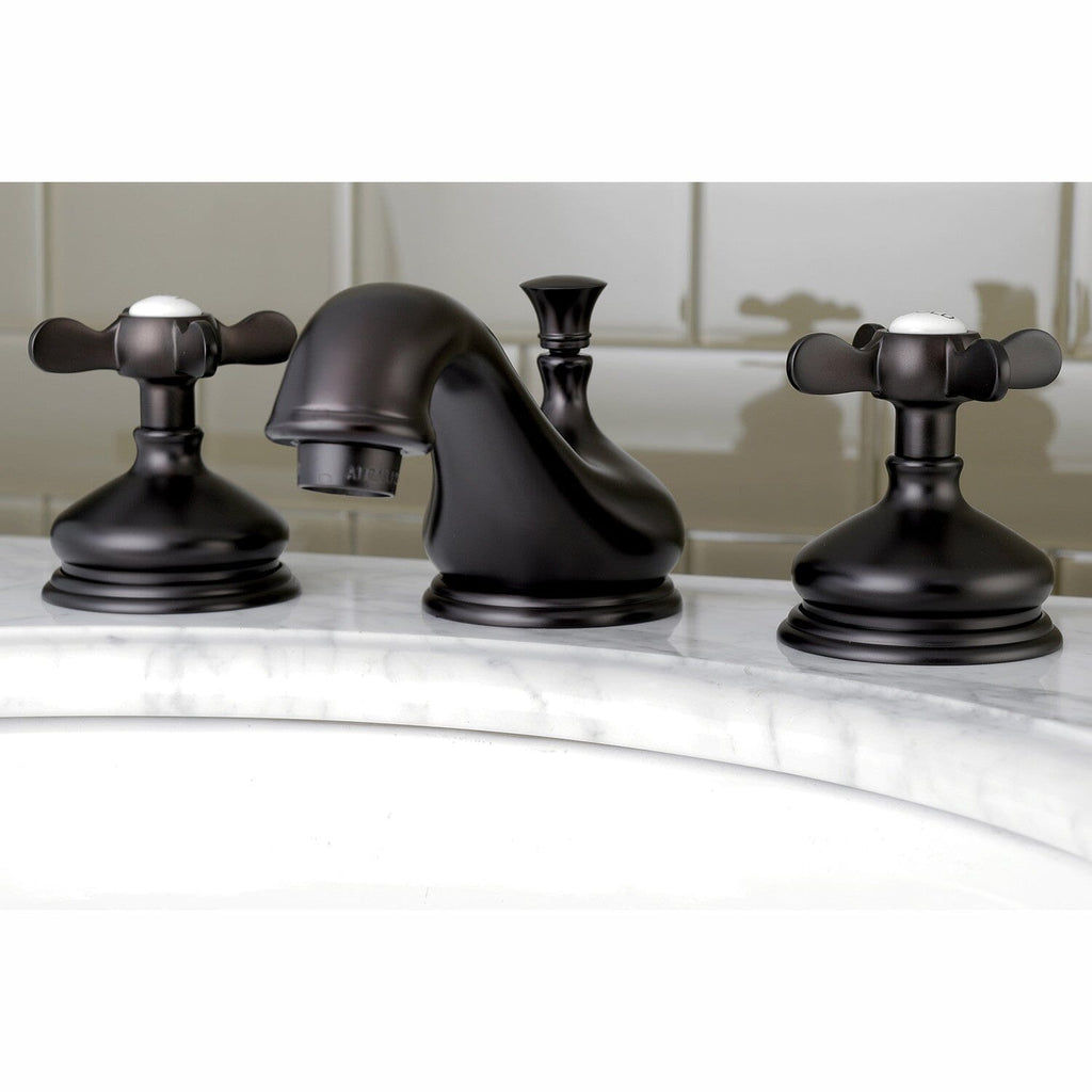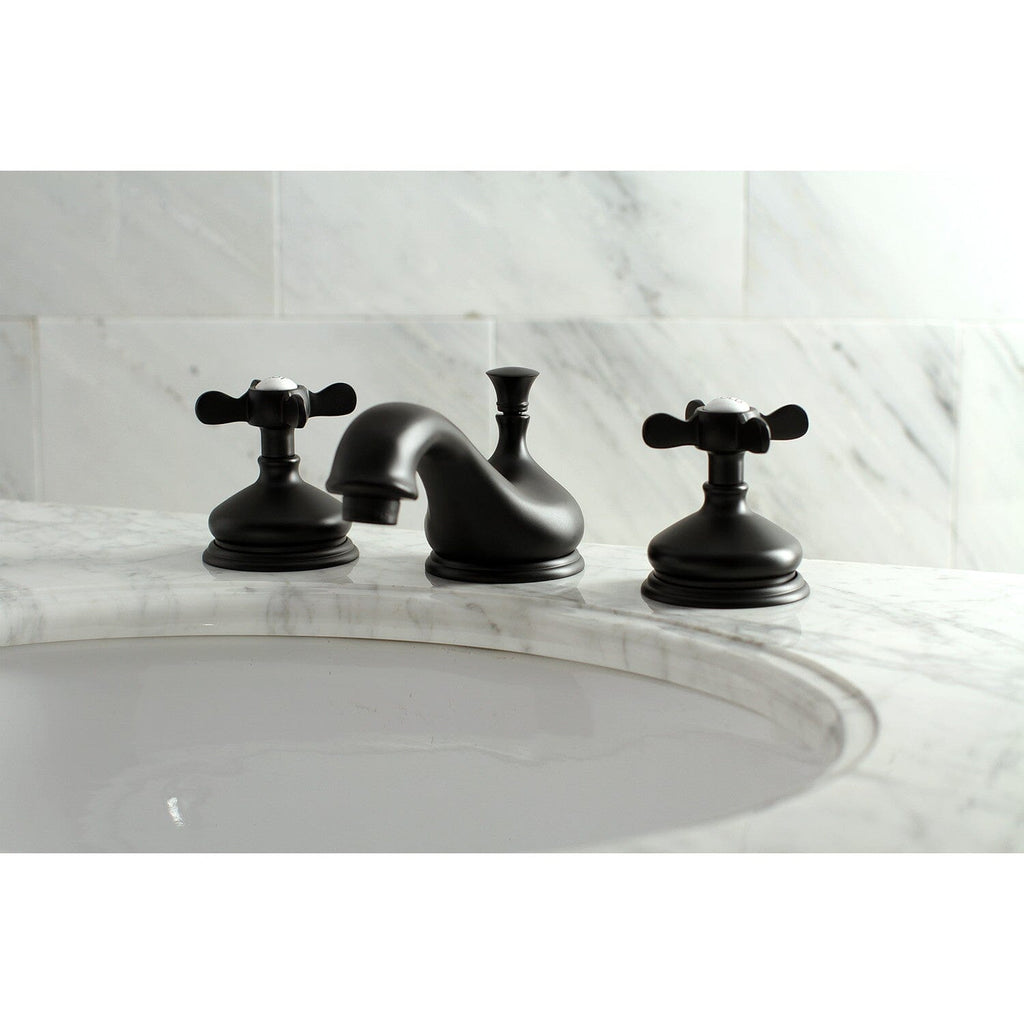 The spirit of the Victorian Era finds itself elegantly and eagerly spun into the unique design of this faucet. Ideal for more spacious bathrooms, widespread faucets are more spread apart and feature a 3-hole installation. The Essex 8" Widespread Bathroom Faucet, with its featured sturdy brass construction and premium matte black finish, are guaranteed to glamorize your home's traditional ensemble for years to come. This faucet adds a sheen of classical grace to your traditional style. A matching finish drain is also included.