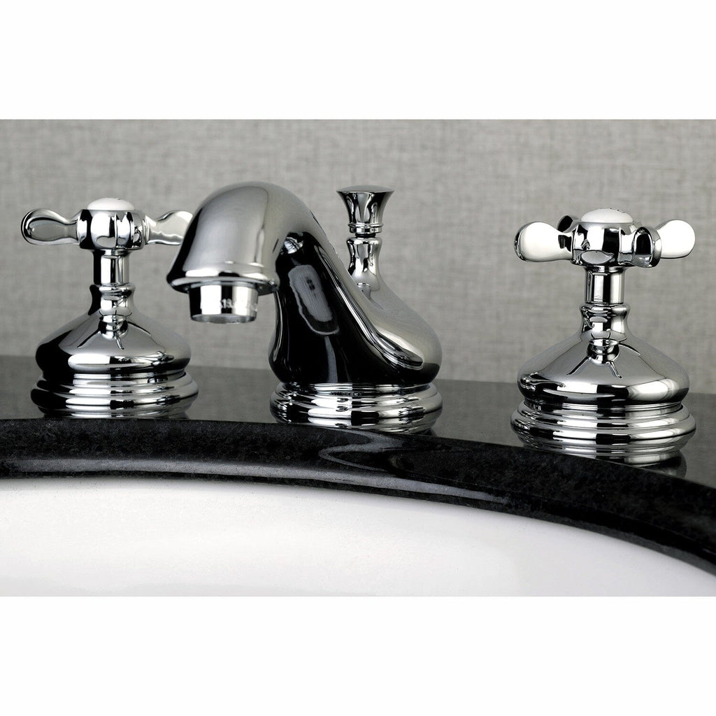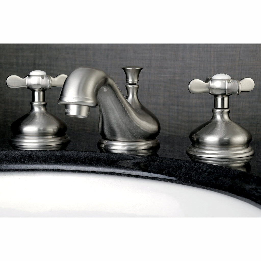 Heirloom Two-Handle 3-Hole Deck Mount Widespread Bathroom Faucet with Brass Pop-Up Ideal for more spacious bathrooms, widespread faucets are more spread apart and feature a 3-hole installation. The Heirloom 8" Widespread Bathroom Faucet, with its its featured sturdy brass construction...