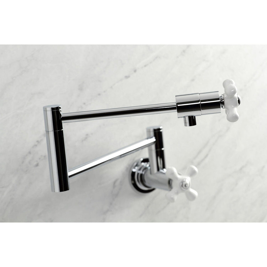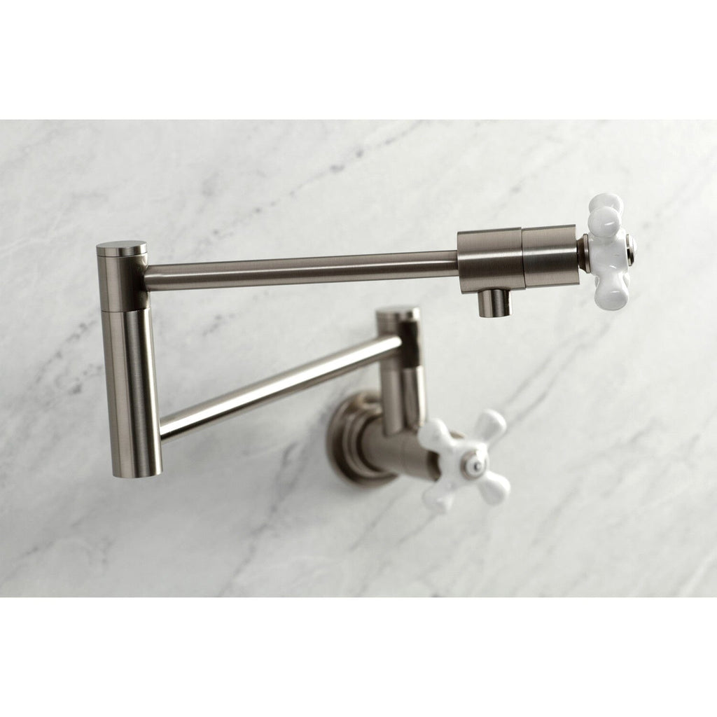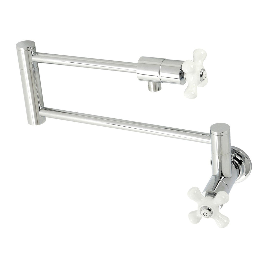 Restoration Two-Handle 1-Hole Wall Mount Pot Filler Faucet Classical artistry from the late 19th Century to early 20th Century is mirrored beautifully within this faucet's traditional charm. As an excellent tool to quickly, easily, and stylishly fill pots, eliminate strain...