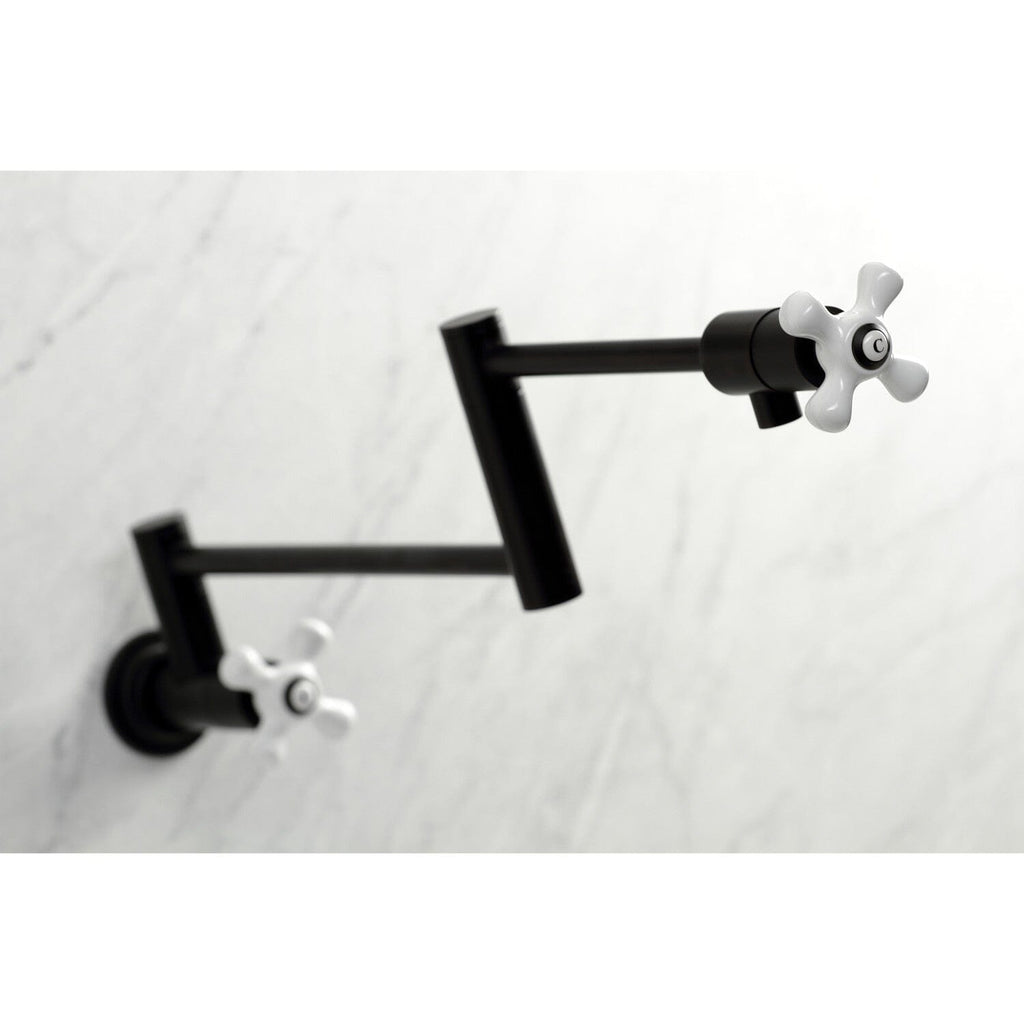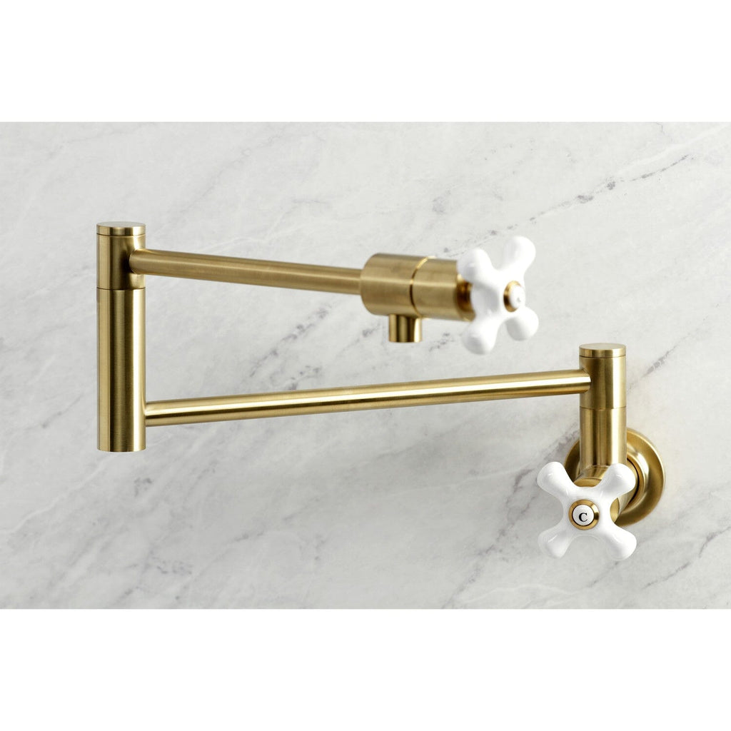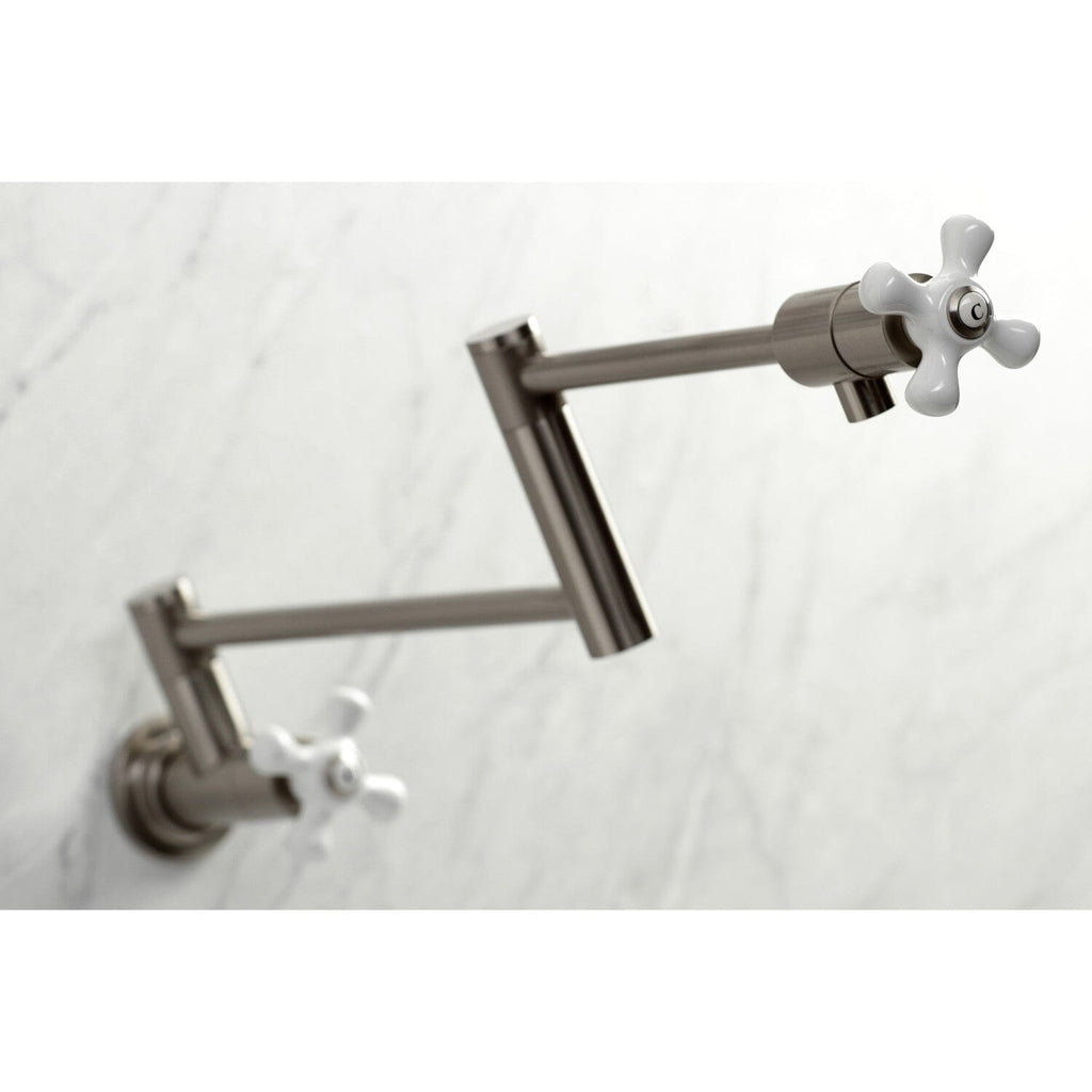 Restoration Two-Handle 1-Hole Wall Mount Pot Filler Faucet Classical artistry from the late 19th Century to early 20th Century is mirrored beautifully within this faucet's traditional charm. As an excellent tool to quickly, easily, and stylishly fill pots, eliminate strain...