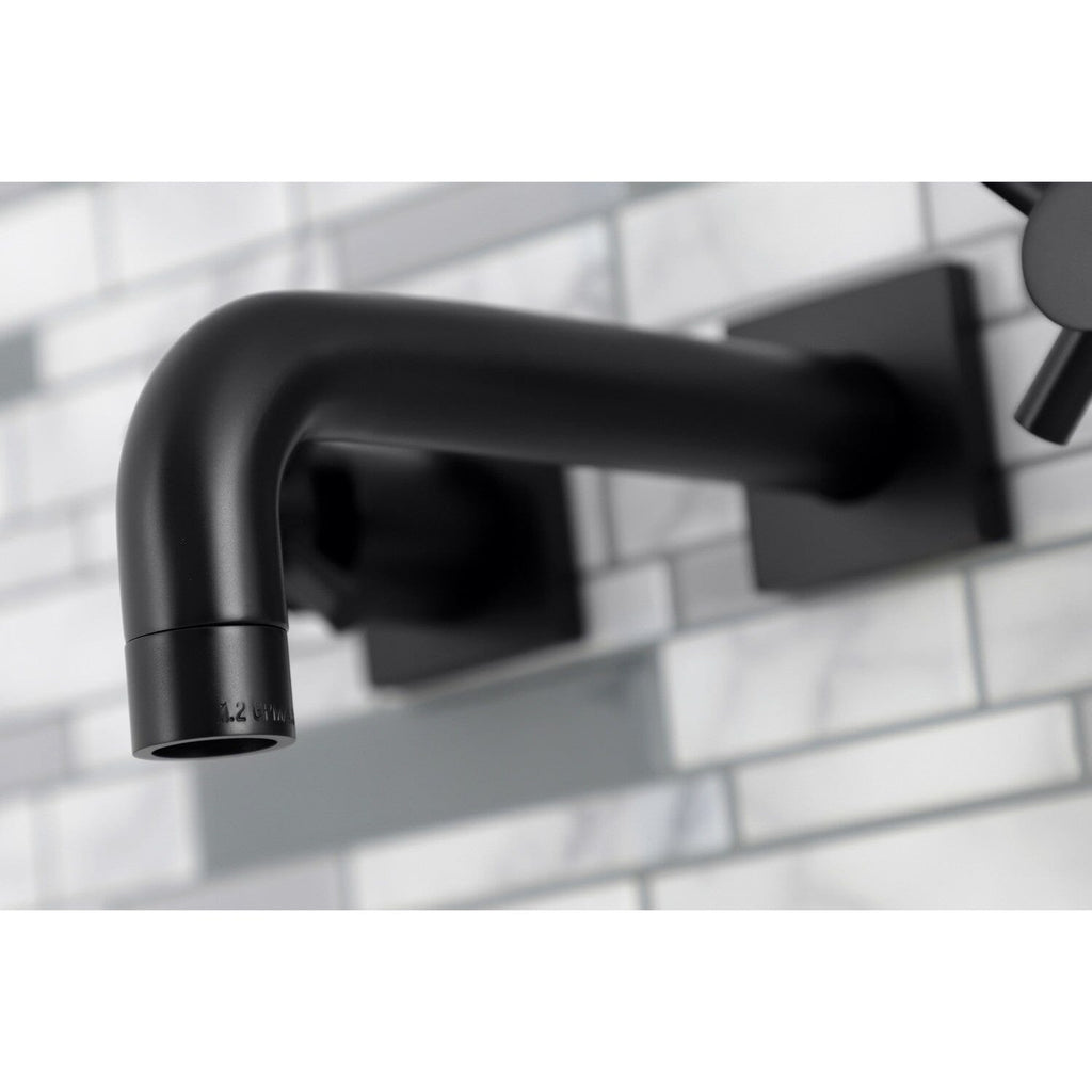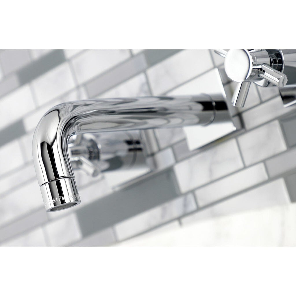 Concord Double-Handle 3-Hole Wall Mount Bathroom Faucet This faucet boasts bold, sleek design with its cylindrical styling. Attached to the wall behind your sink, the horizontal pop adds a stunning element to your bathroom design. Clean-up is also made a...
