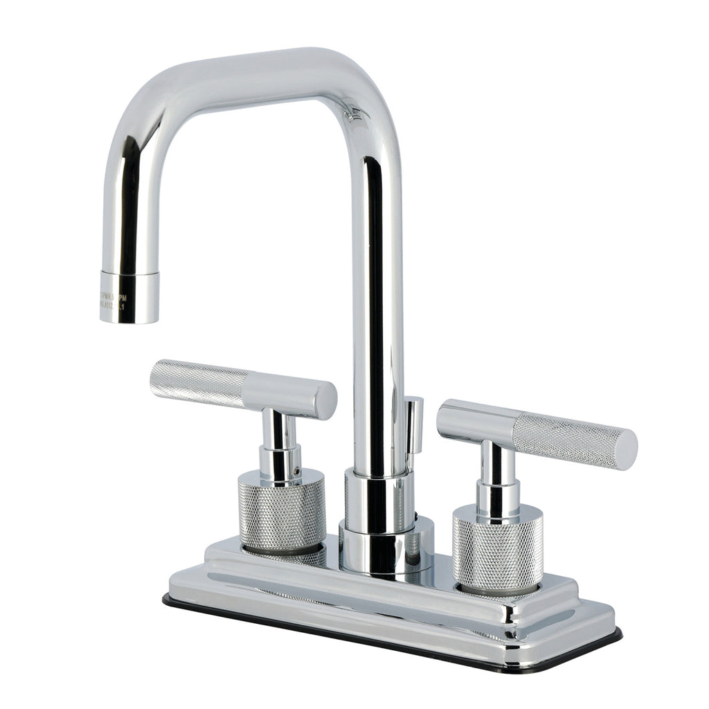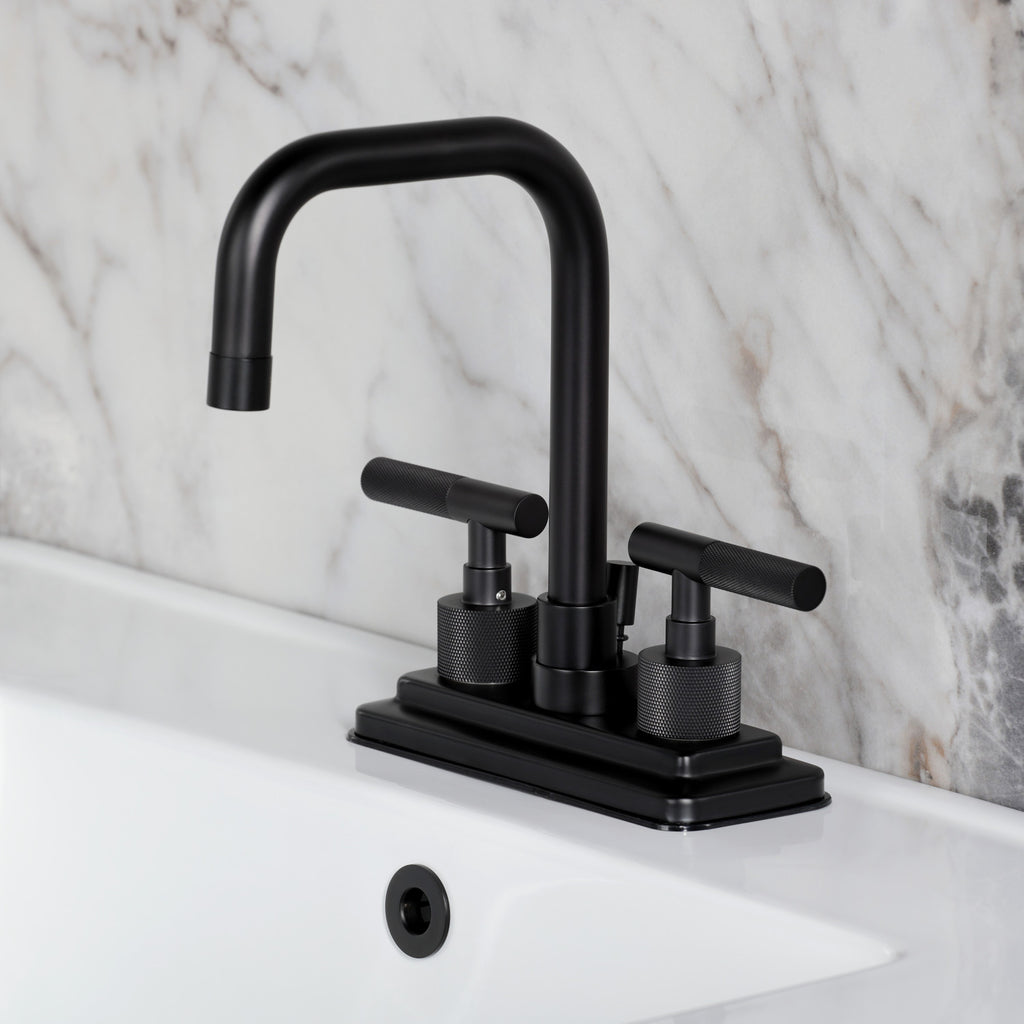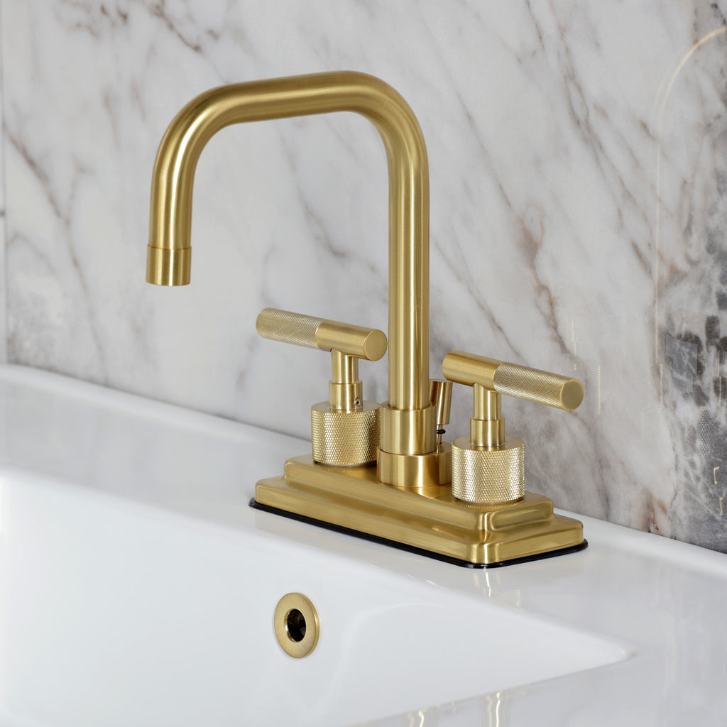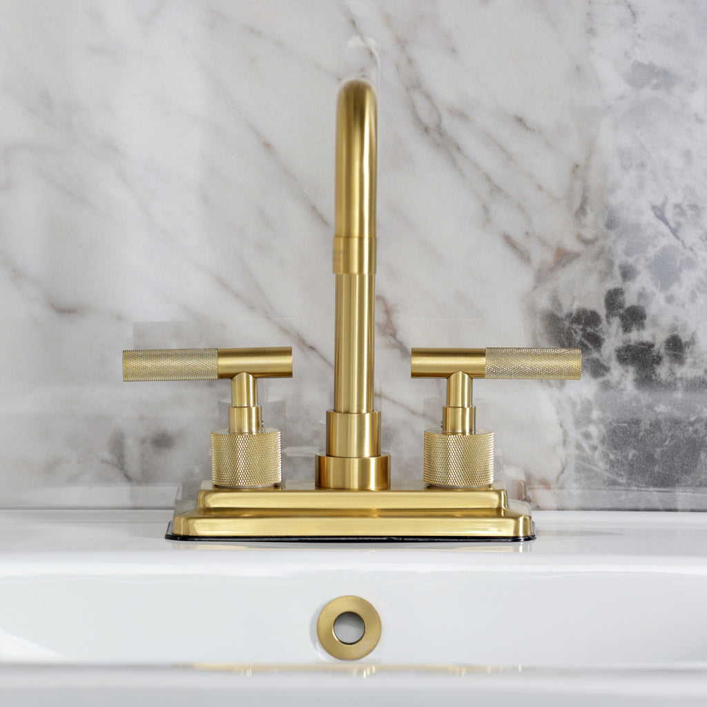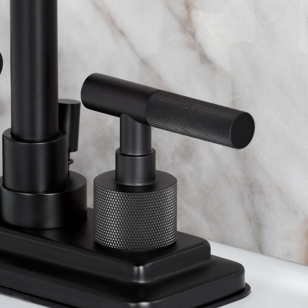 Convergent Knurled Double-Handle 3-Hole Deck Mount 4-Inch Centerset Bathroom Faucet with Brass Pop-Up