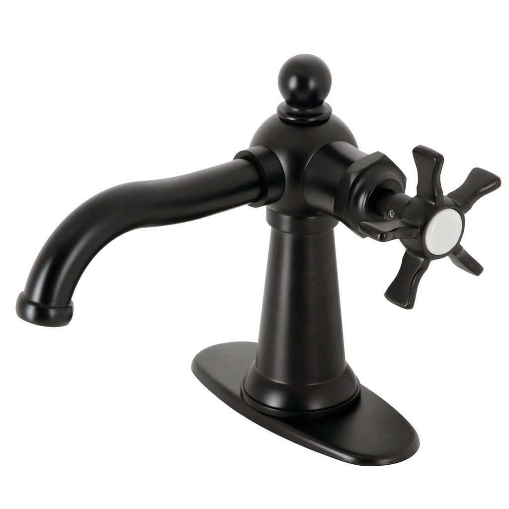 The exquisite design of this faucet tastefully flatters the elegant architecture of traditional homes with its fine detailing. Single-hole bathroom faucets provide a more streamlined look. Also, they will allow your bathroom to appear more spacious with the limited counter space they require. The Hamilton single-handle bathroom faucet with push pop-up and its featured sturdy brass construction and premium matte black finish are guaranteed to glamorize your home's traditional ensemble for years to come. A matching finish drain is also included.