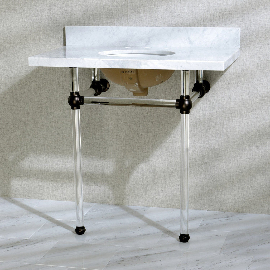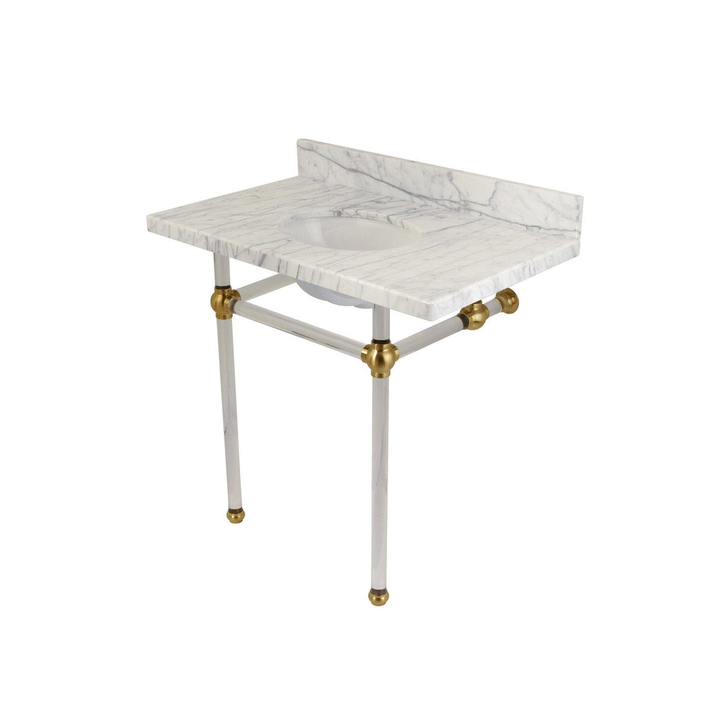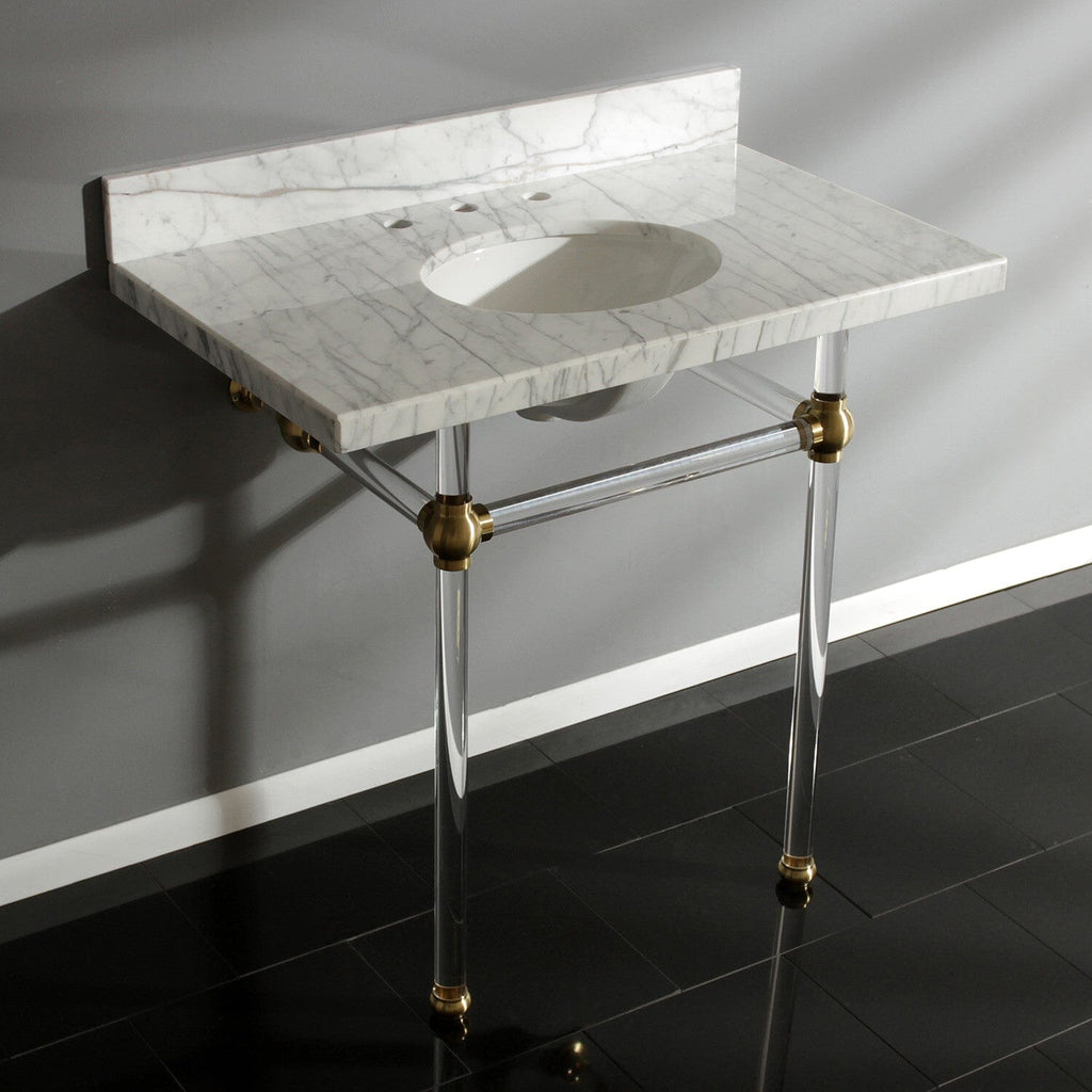 Templeton 36-Inch Carrara Marble Vanity Top with Acrylic Legs (8-Inch, 3-Hole)