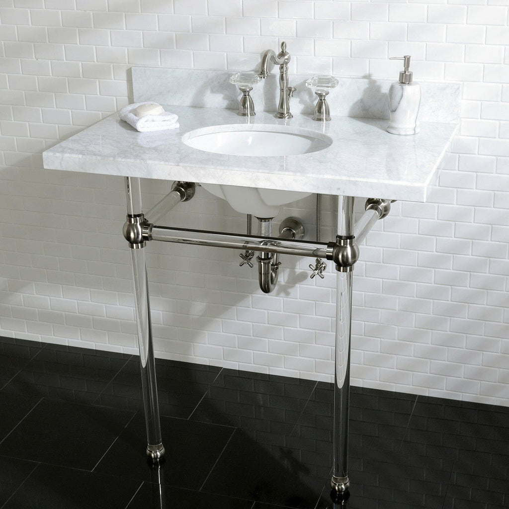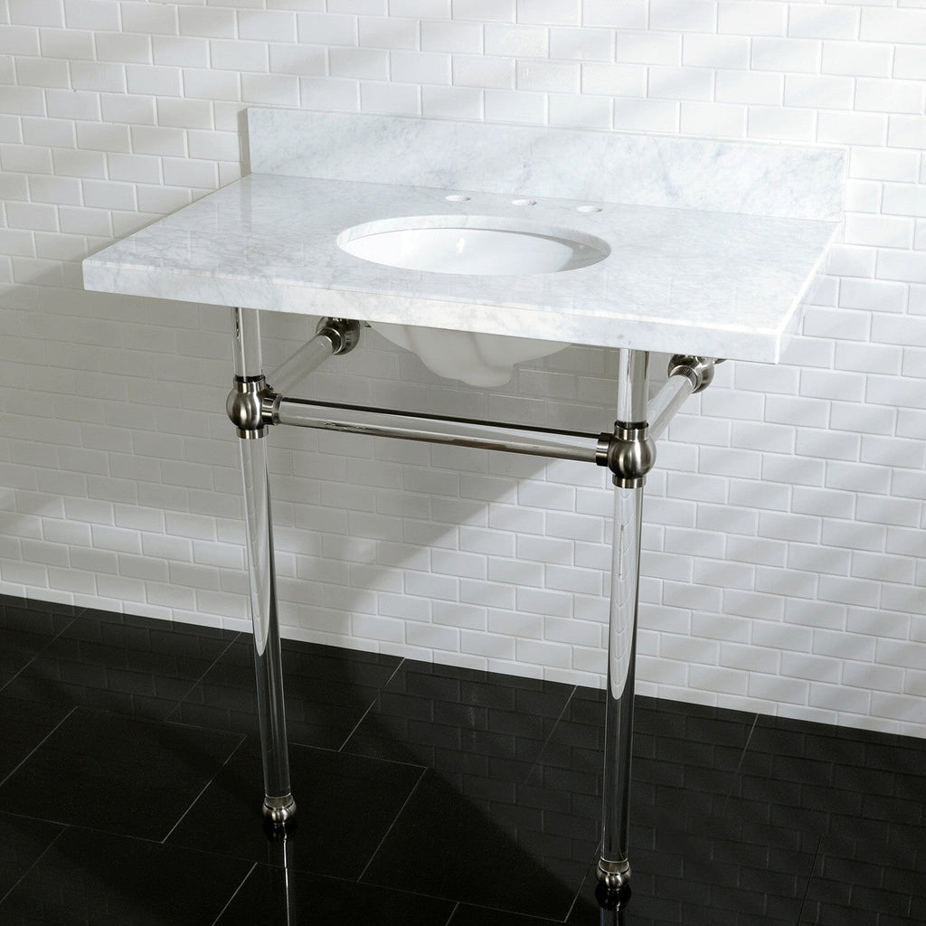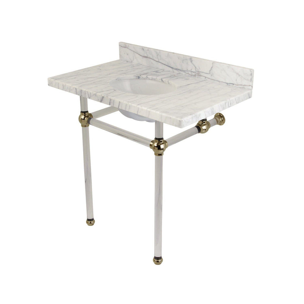 Templeton 36-Inch Carrara Marble Vanity Top with Acrylic Legs (8-Inch, 3-Hole)