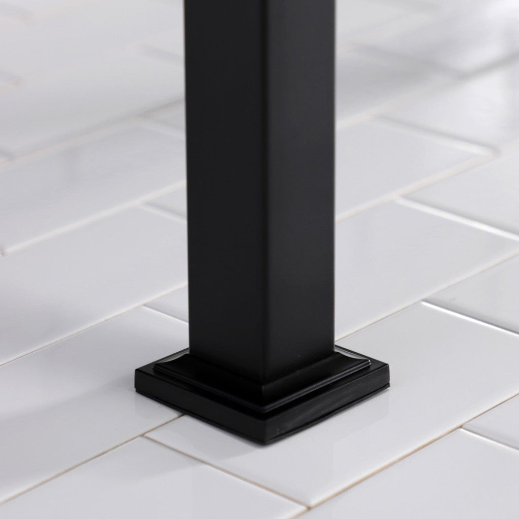 With a beautiful ceramic counter top, this console sink set is a long lasting, durable, and elegant addition to your bathroom. Solid ceramic sinks and tops like the LBT-series top in this listing are finished with a glossy glaze on the top and sink basin interior, making for a pristine, stain-resistant surface and glistening finish that is easily maintained. The underside and basin exterior are unglazed/unfinished and coated with a matte white protective sealant that prevents moisture absorption and staining. Solid ceramic pieces cannot be glazed on all sides, because the nature of ceramic material requires a minimum surface area be left raw during the glaze firing process so the piece does not explode. Also for your convenience, anti-slip rubber pads are included with the stainless steel legs to ensure steadiness. Water supply kit, drain assembly, and the faucet are sold separately.