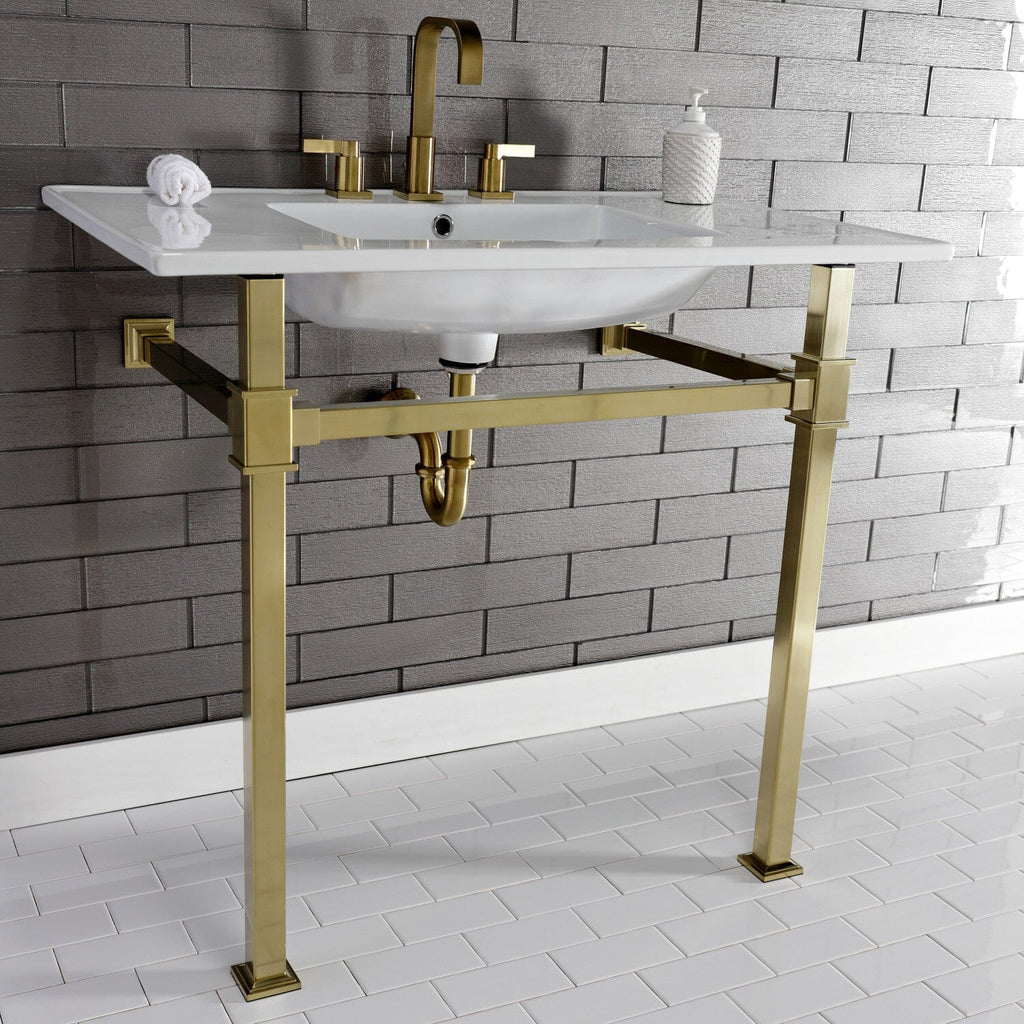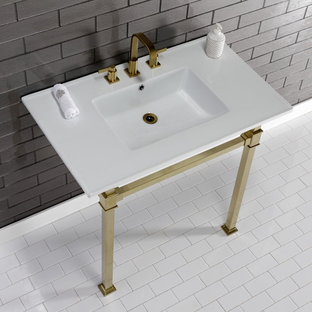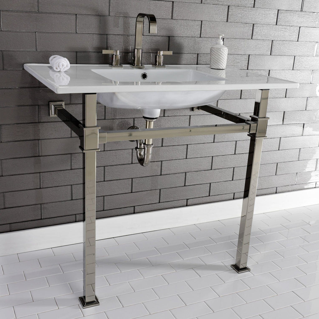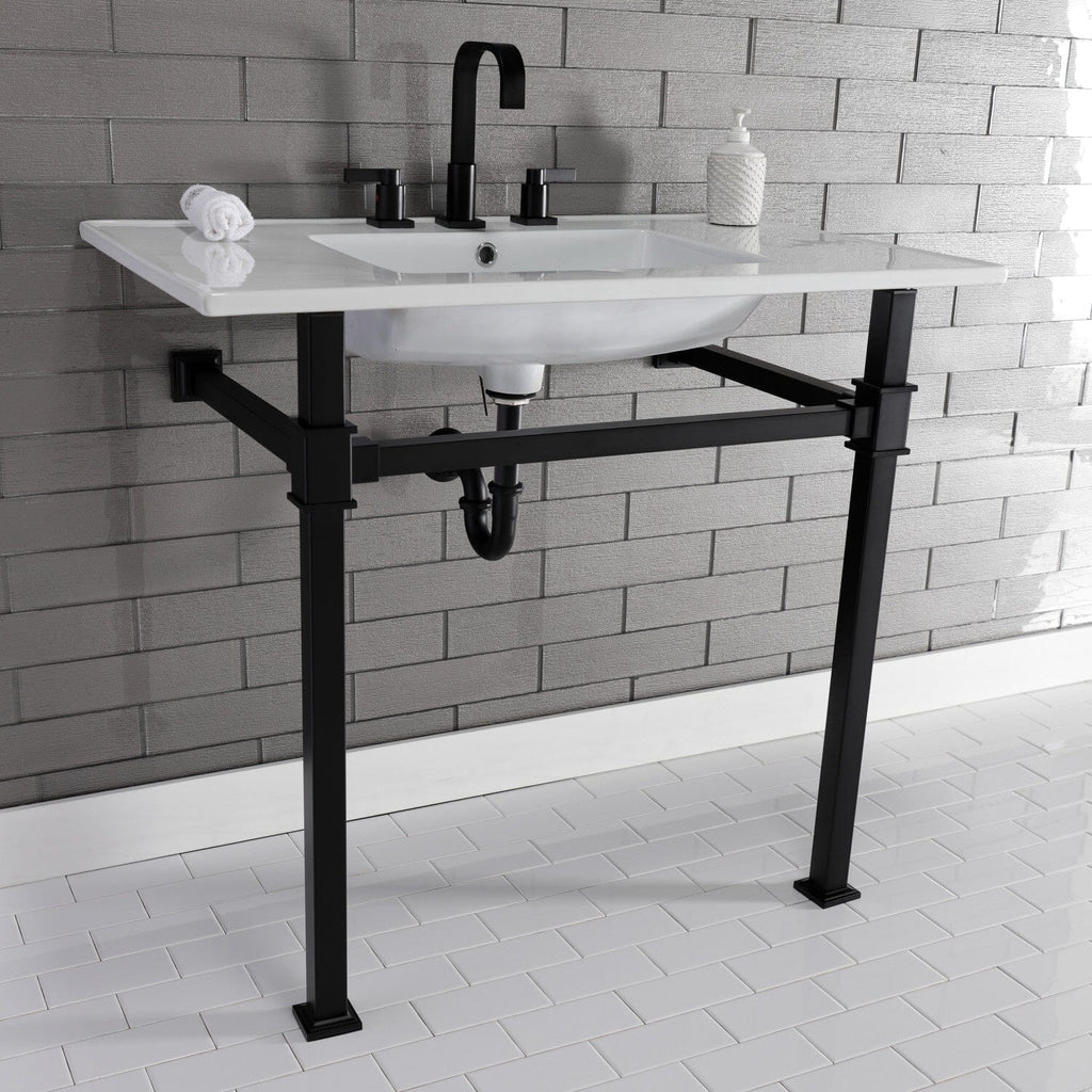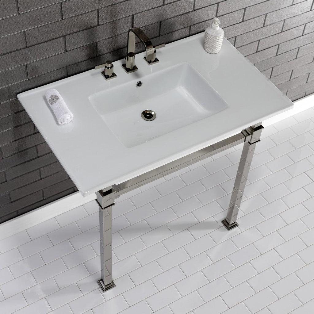 Monarch 37-Inch Ceramic Console Sink with Stainless Steel Legs (8-Inch, 3-Hole)