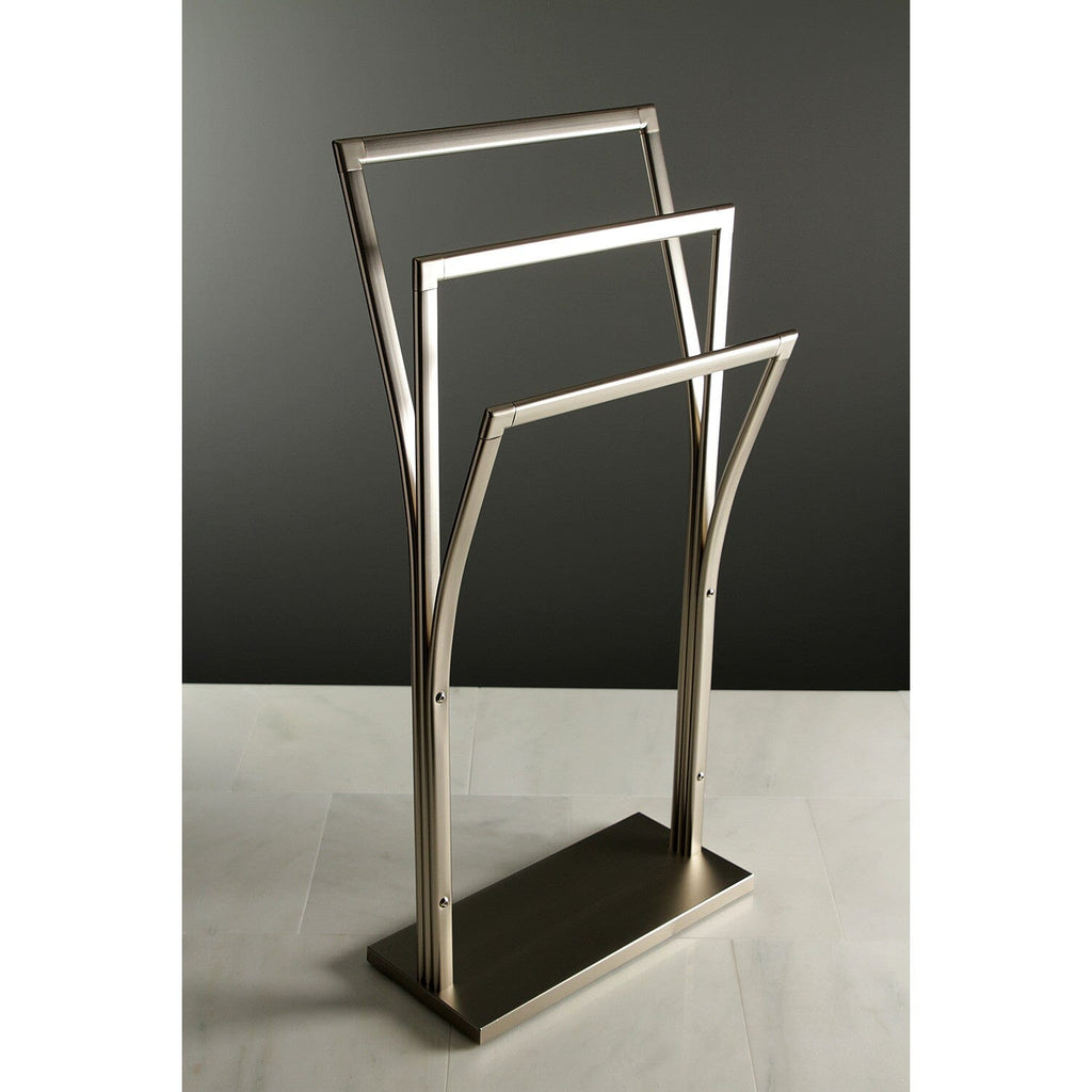 With a high-end European styled design, this pedestal Y-style towel rack provides 3 levels for towels to hang from. Add this towel rack to your bathroom or even poolside for a stylish and well constructed towel holder. Three levels of towel storage provide plenty of rooms for bath and hand towels. Premium steel construction and stainless steel base construction ensure durability and reliability for long-term usage.