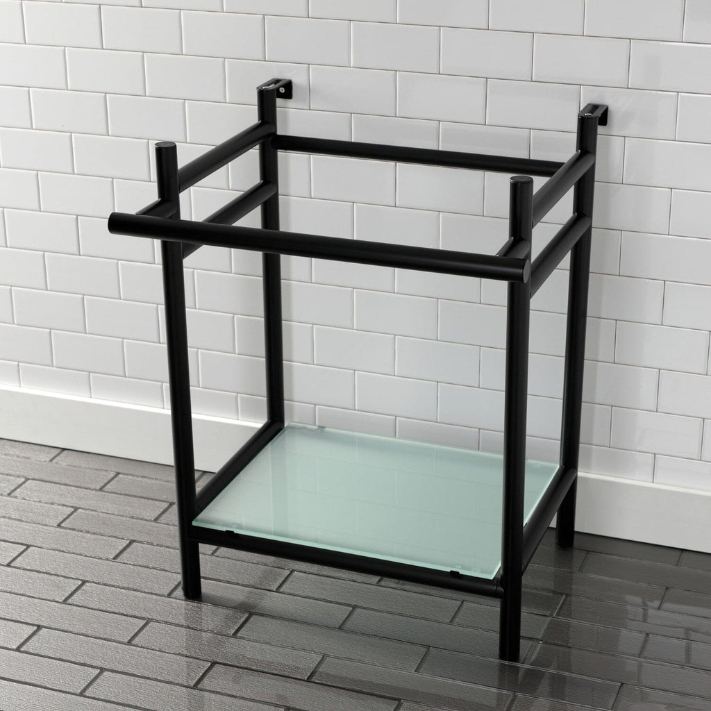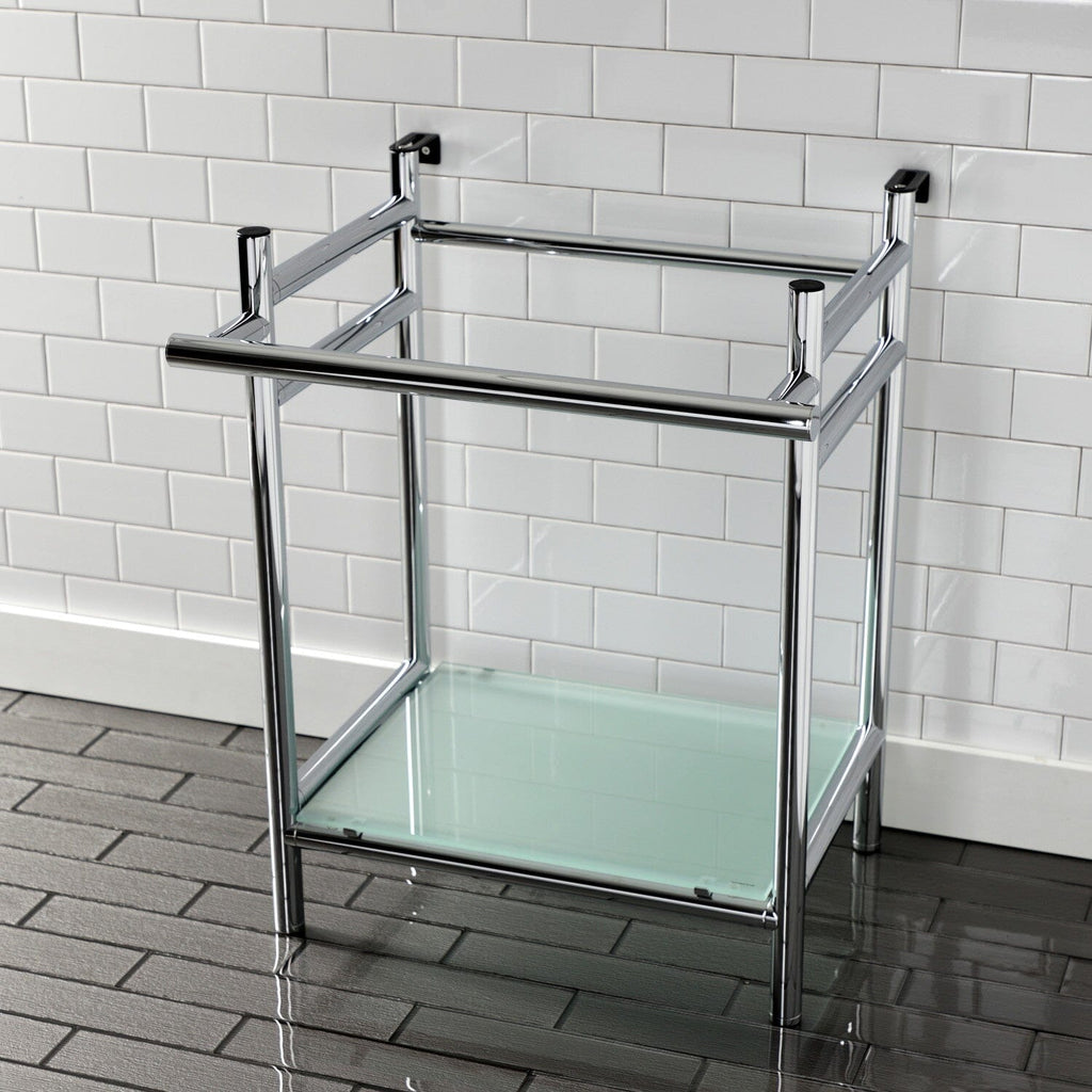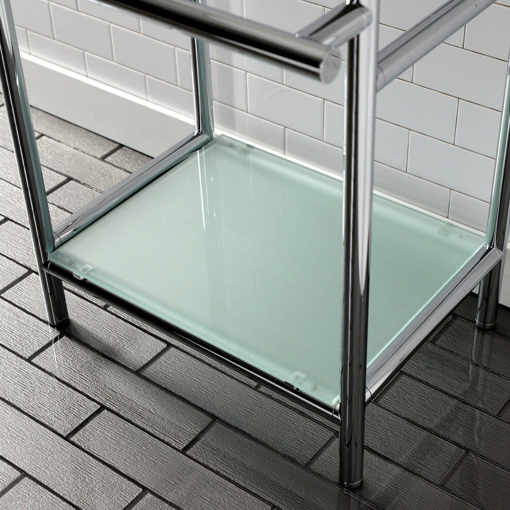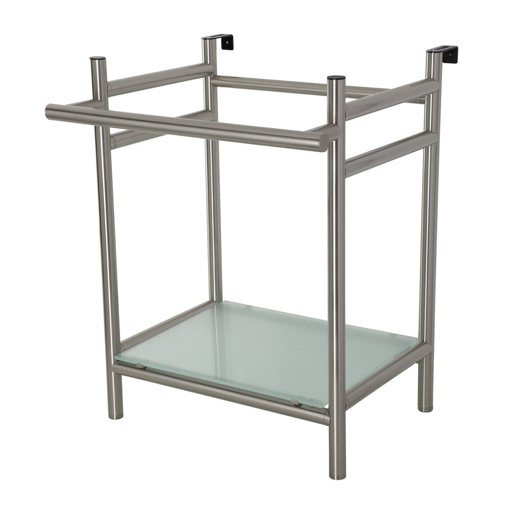 A simple minimalist support for your console sink tops, this sink base comes in a multitude of finishes that will bring out the shine in your bathroom. The Sheridan 22-inch console sink legs is constructed out of stainless steel and is designed for durability and reliability to last for years to come. This console sink legs includes tempered glass storage shelf and 24" front towel bar for your convenience. Pair these legs with a console top, available in multiple materials.
