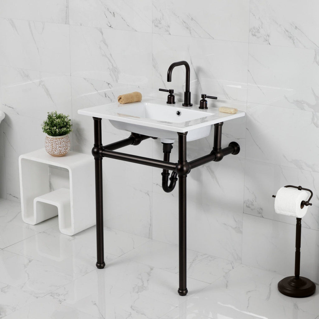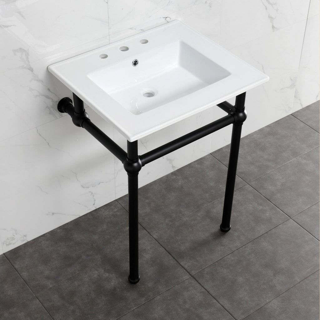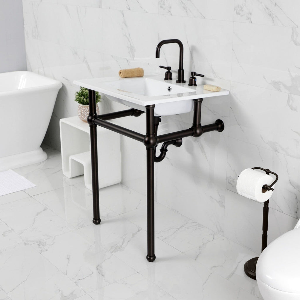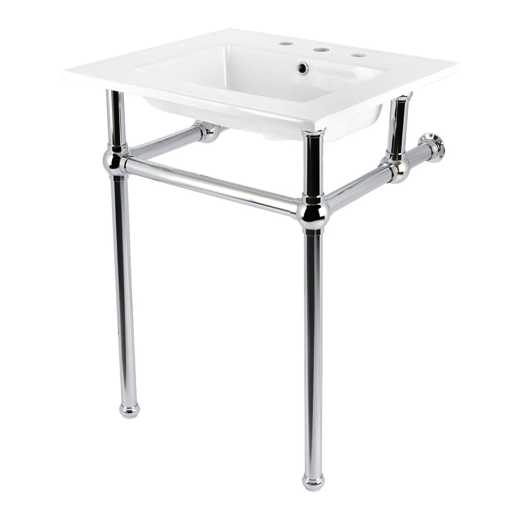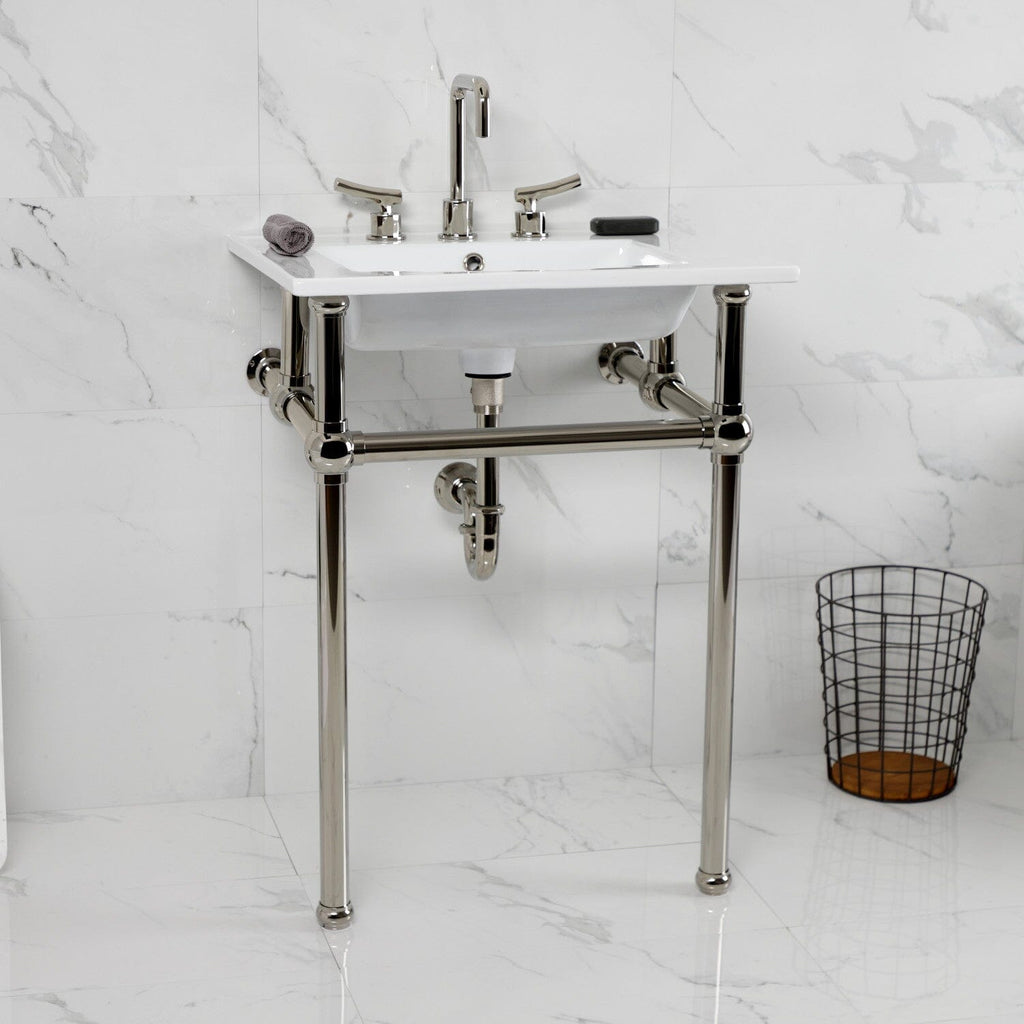 Templeton 25-Inch Ceramic Console Sink with Brass Legs (8-Inch, 3-Hole)