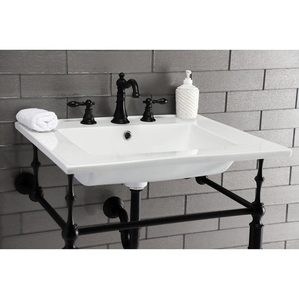 Edwardian 25-Inch Ceramic Console Sink with Brass Legs (8-Inch, 3-Hole)