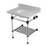 Templeton 30-Inch Carrara Marble Console Sink with Acrylic Legs and Shelf (8-Inch, 3-Hole)