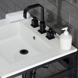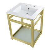 Quadras 25-Inch Ceramic Console Sink with Steel Base and Glass Shelf (8-Inch, 3-Hole)