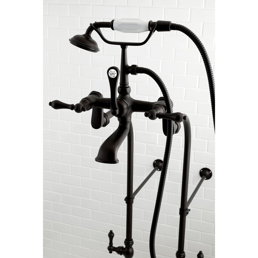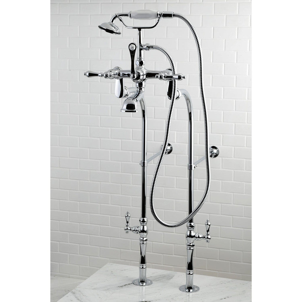 Vintage Three-Handle 2-Hole Freestanding Clawfoot Tub Faucet Package with Supply Line and Hand Shower