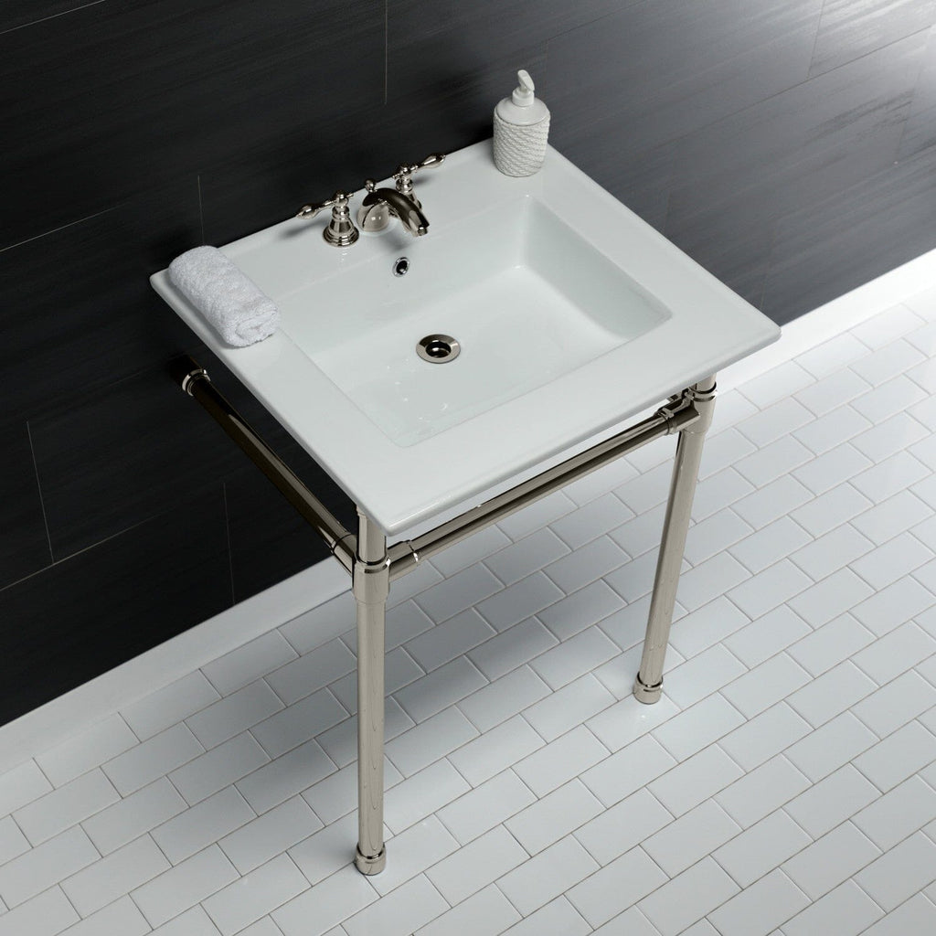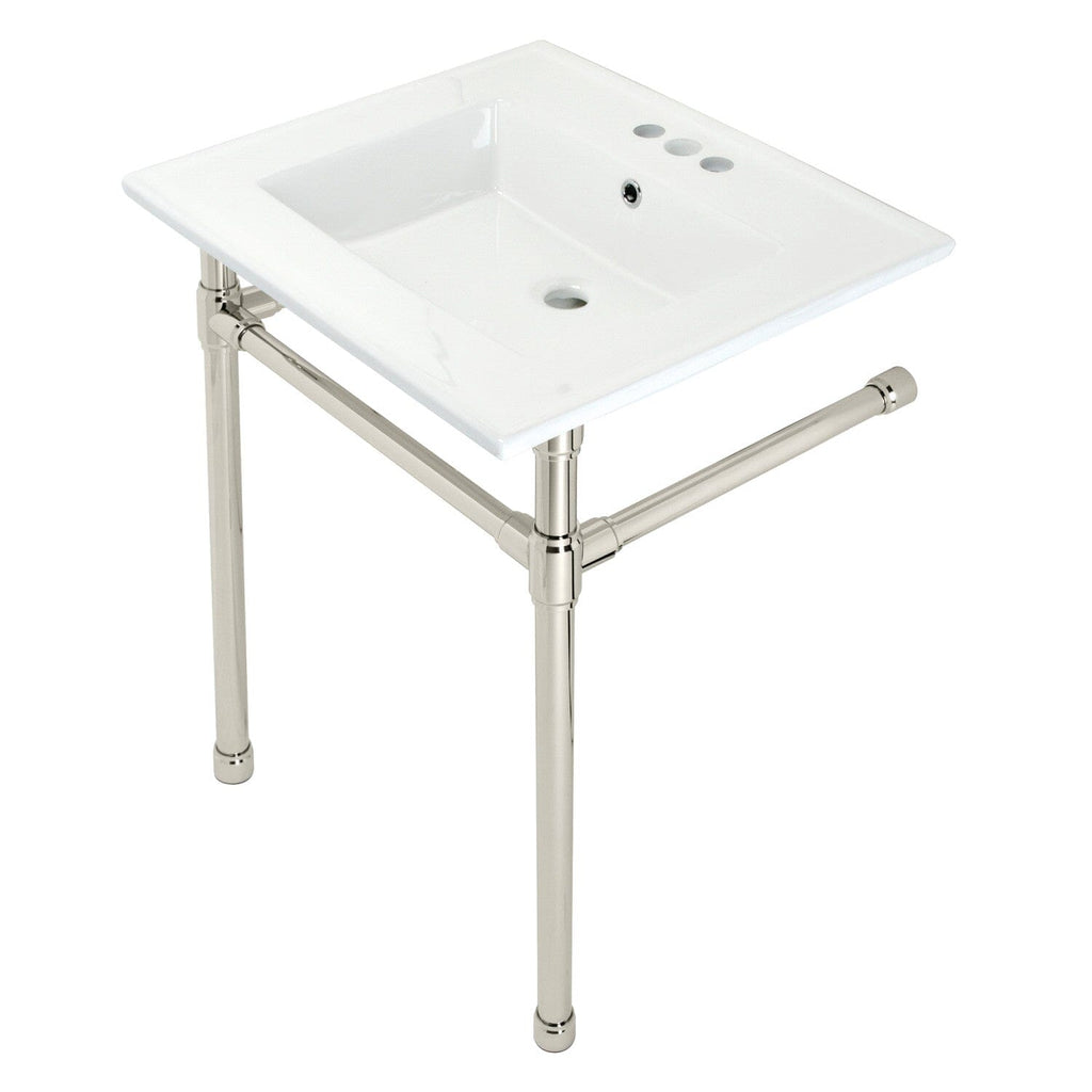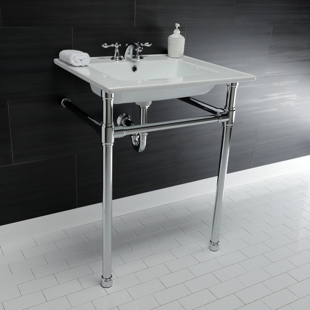 Dreyfuss 25-Inch Ceramic Console Sink with Stainless Steel Legs (4-Inch, 3-Hole)