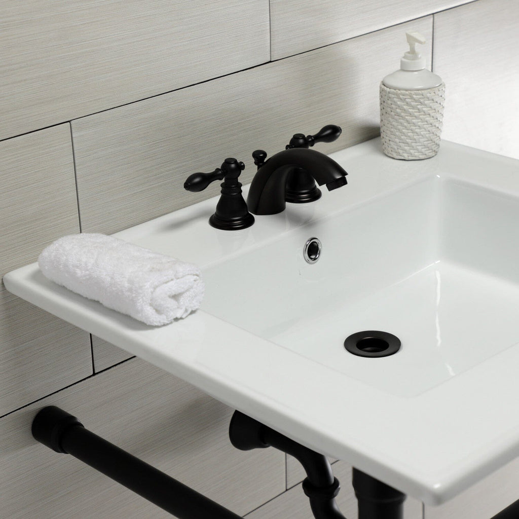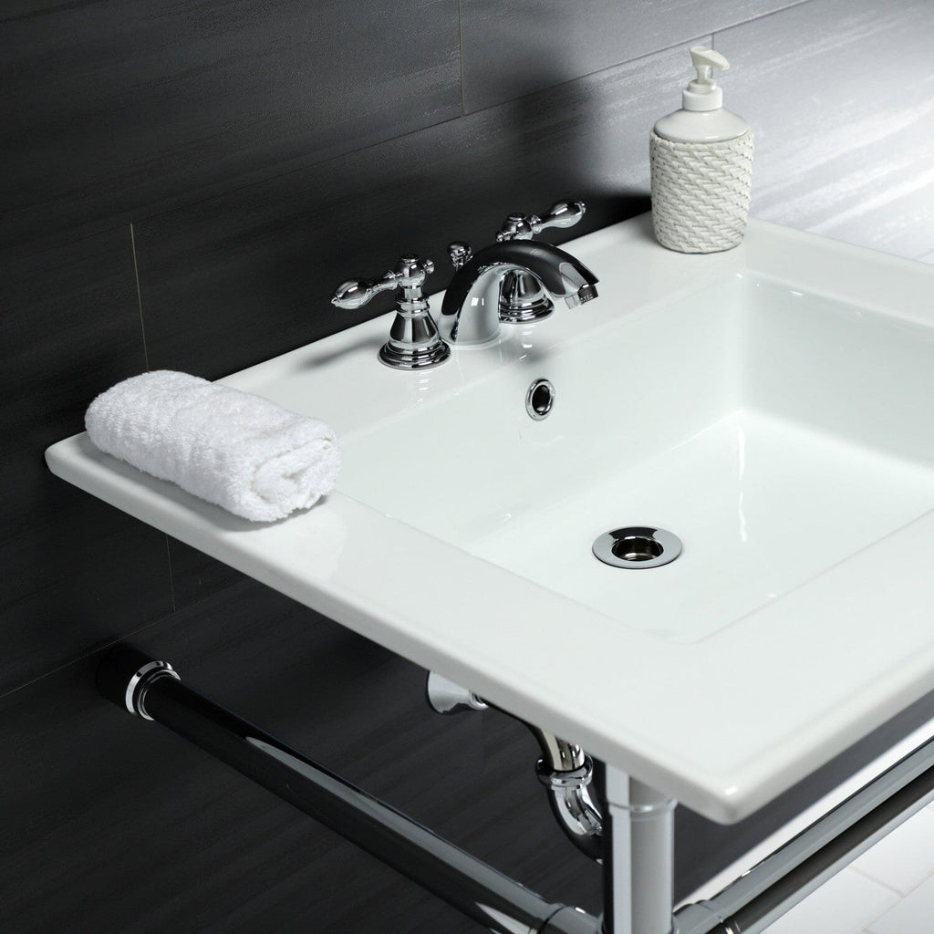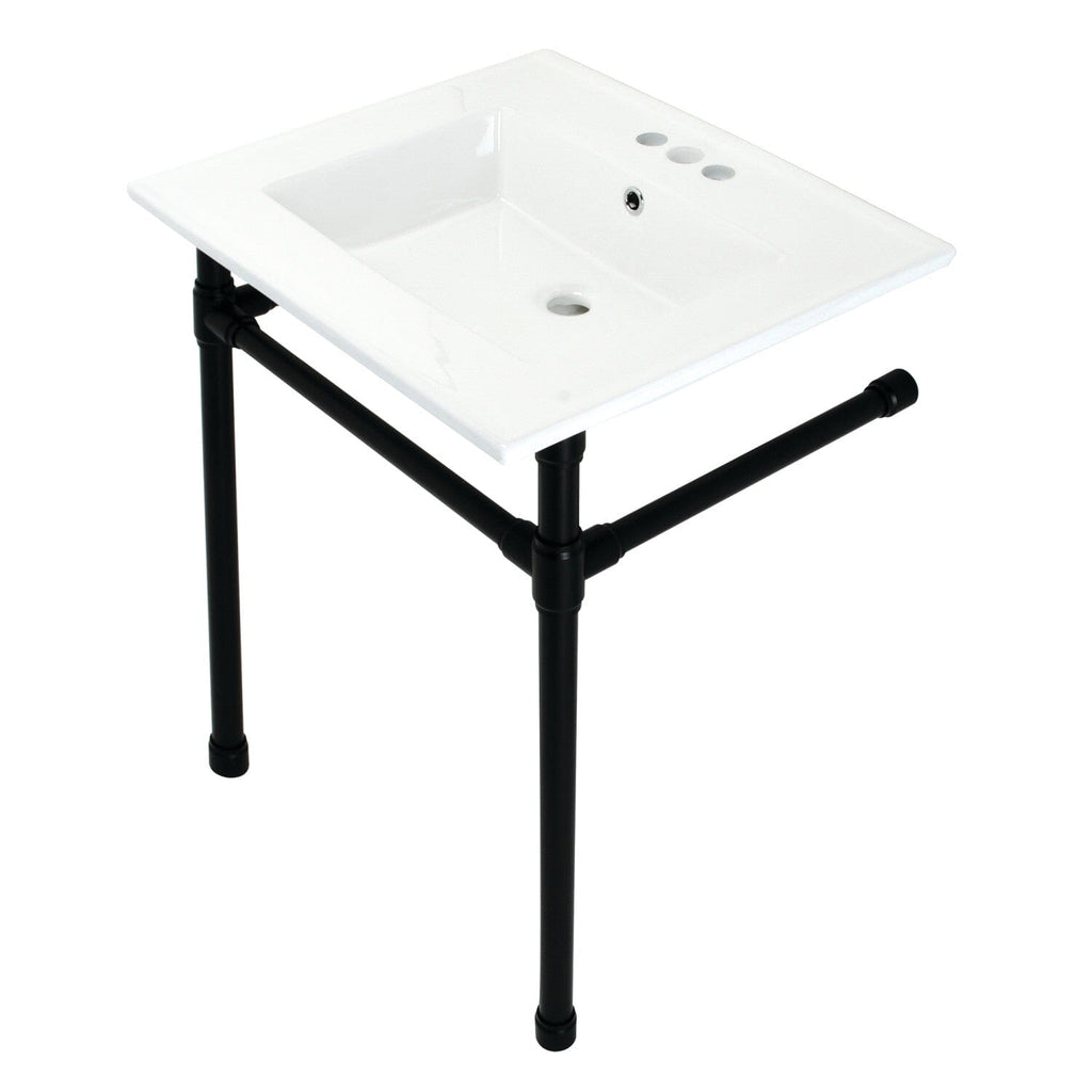 Dreyfuss 25-Inch Ceramic Console Sink with Stainless Steel Legs (4-Inch, 3-Hole)