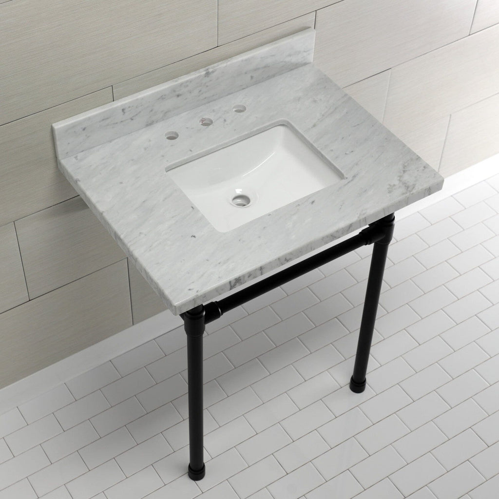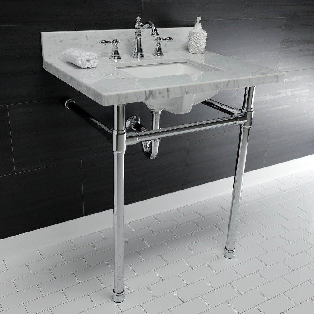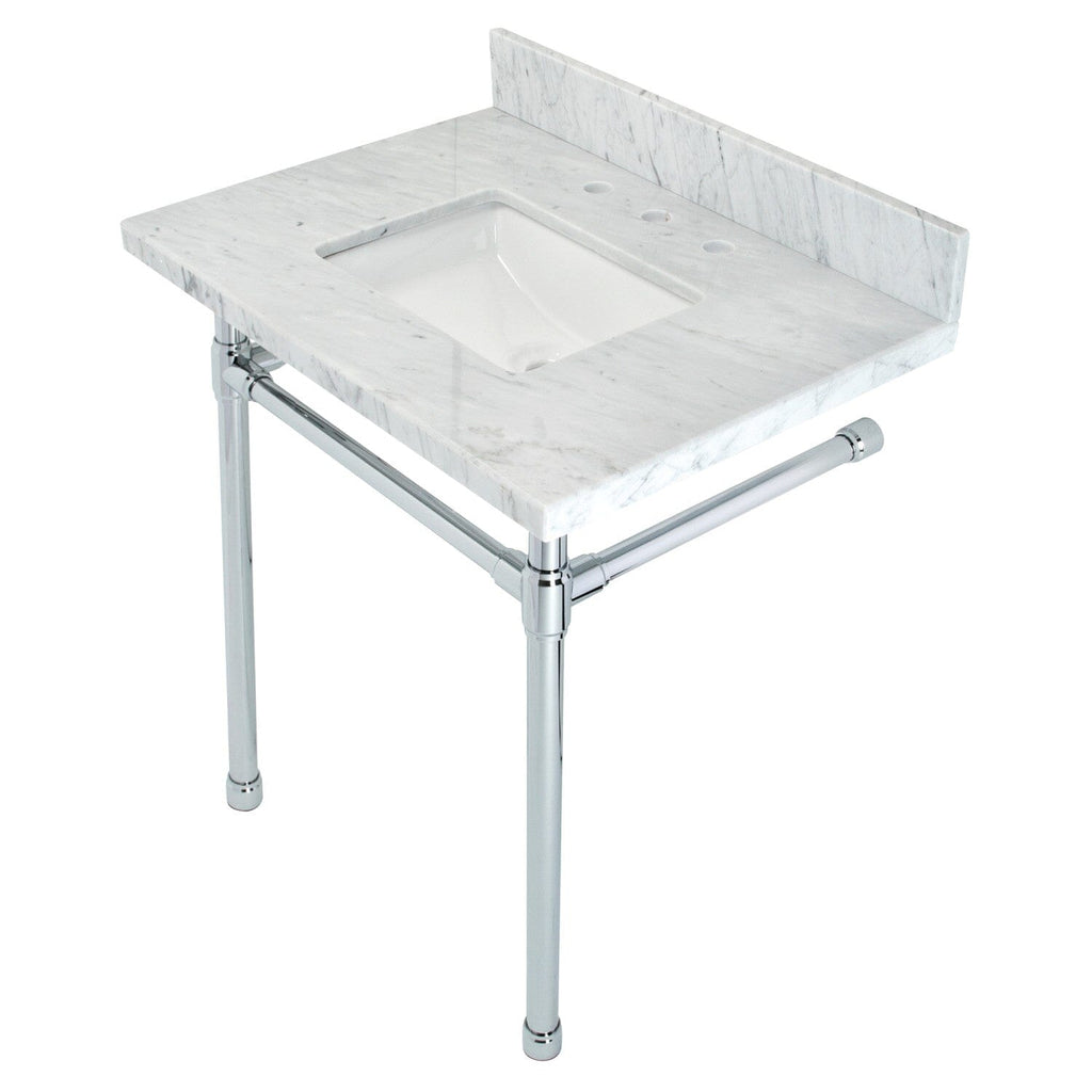 Dreyfuss 30-Inch Carrara Marble Vanity Top with Stainless Steel Legs (8-Inch, 3-Hole)