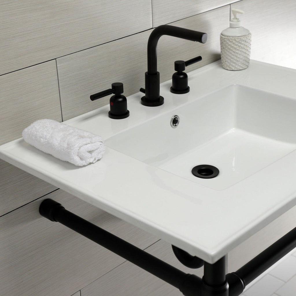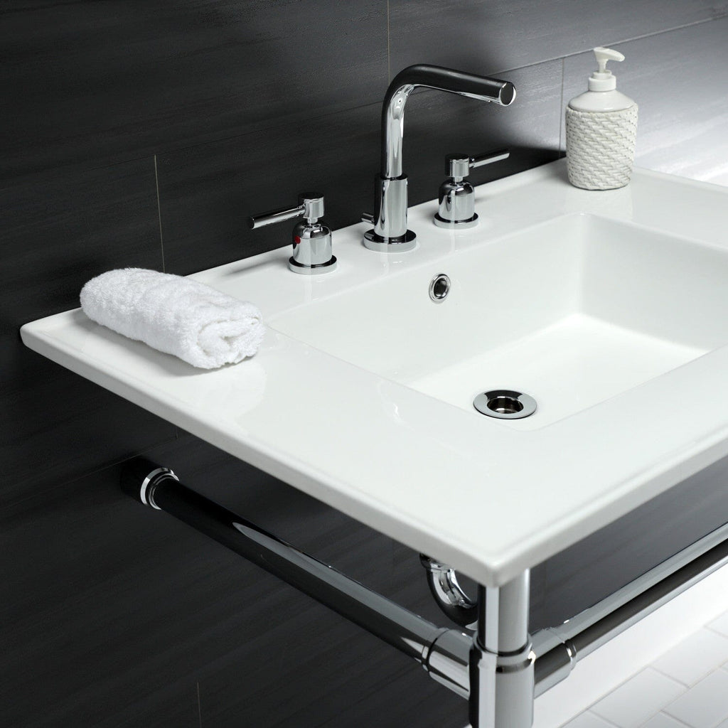 Dreyfuss 31-Inch Ceramic Console Sink with Stainless Steel Legs (8-Inch, 3-Hole)