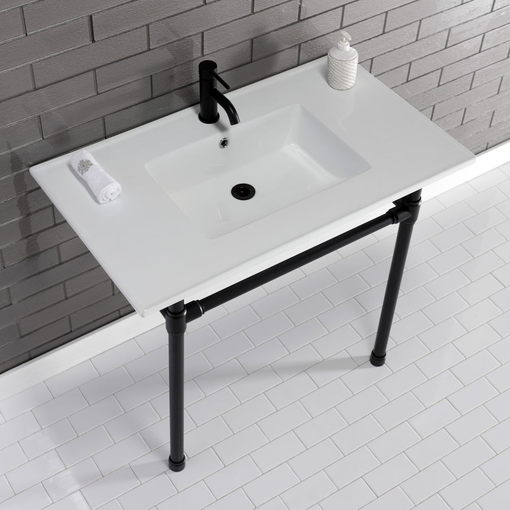 Dreyfuss 37-Inch Ceramic Console Sink with Stainless Steel Legs (1-Hole)
