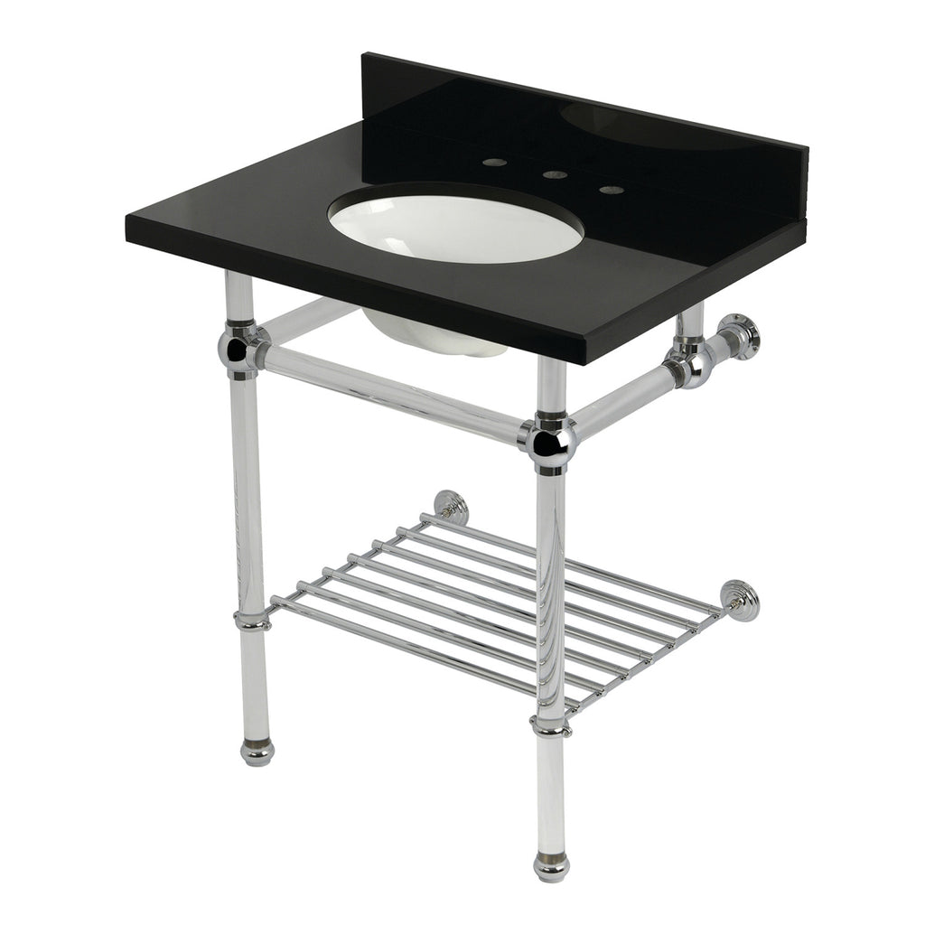 Templeton 30-Inch Black Granite Console Sink with Acrylic Legs and Shelf (8-Inch, 3-Hole)