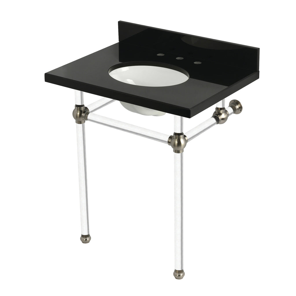 Templeton 30-Inch Black Granite Console Sink with Acrylic Legs (8-Inch, 3-Hole)